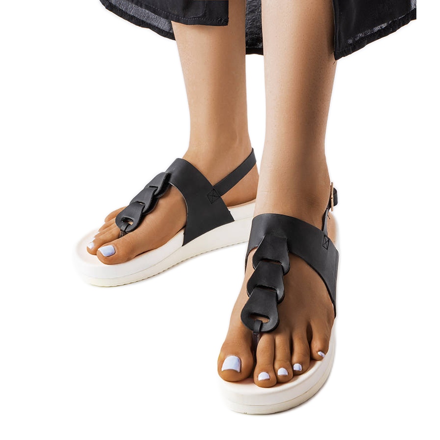 Sandalias de mujer modelo DL00003-1, las chanclas son una opción elegante para la temporada de verano. Están confeccionadas en piel ecológica en color negro (nombre del color del fabricante: Black). El calzado se mantiene en un estilo simple, sin patrones ni decoraciones adicionales, lo que enfatiza su carácter universal. La puntera de las sandalias no está separada.