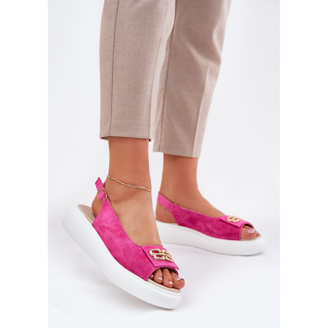 ** Sandalias para mujeres de gamuza con un detalle dorado S. Barski GR51-604 Pink Fuchsia **