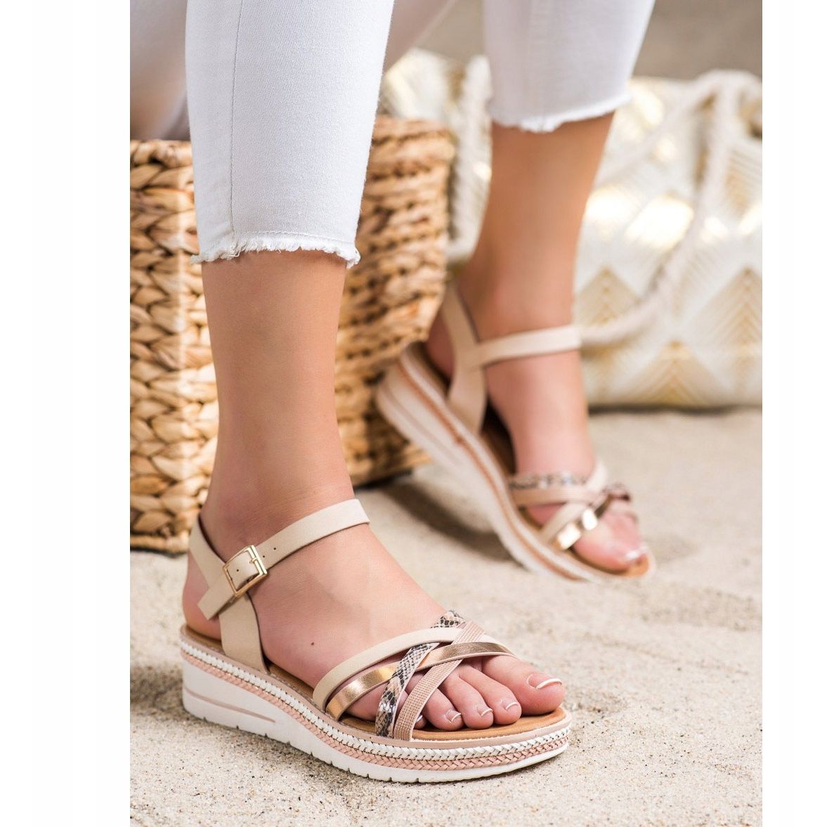 Groto Gogo Sandalias de moda en una cuña baja. beige rosa