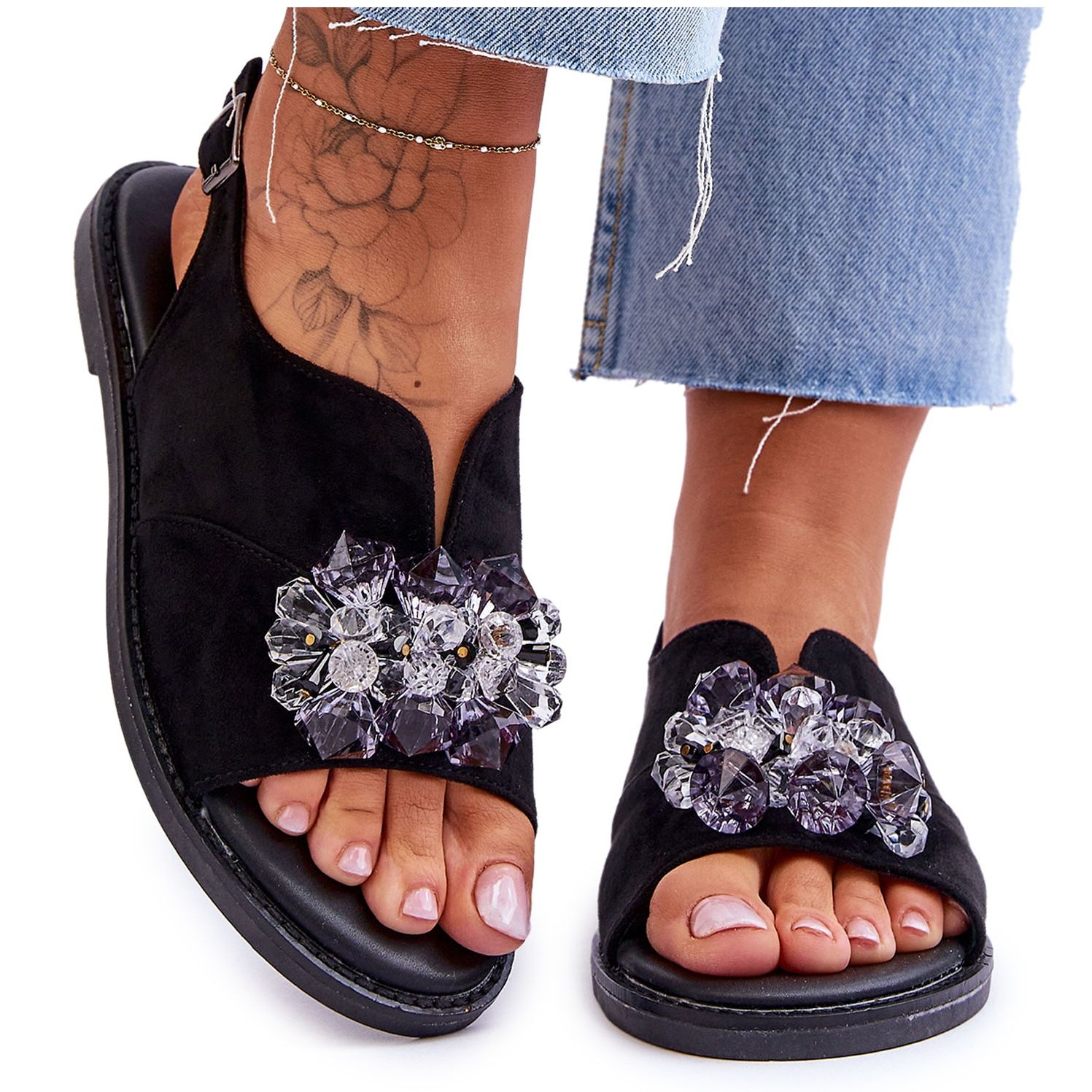 Decoradas en la parte delantera con piedras de plástico que imitan efectivamente los diamantes, las sandalias de ante con piedras para mujer Vinceza Black Mersea sin duda atraerán la atención y agregarán brillo a los estilismos de verano. El diseño aireado de las sandalias es perfecto tanto para paseos por la playa como para salidas nocturnas.