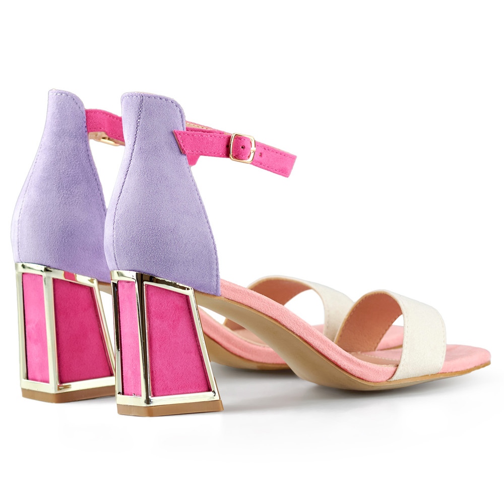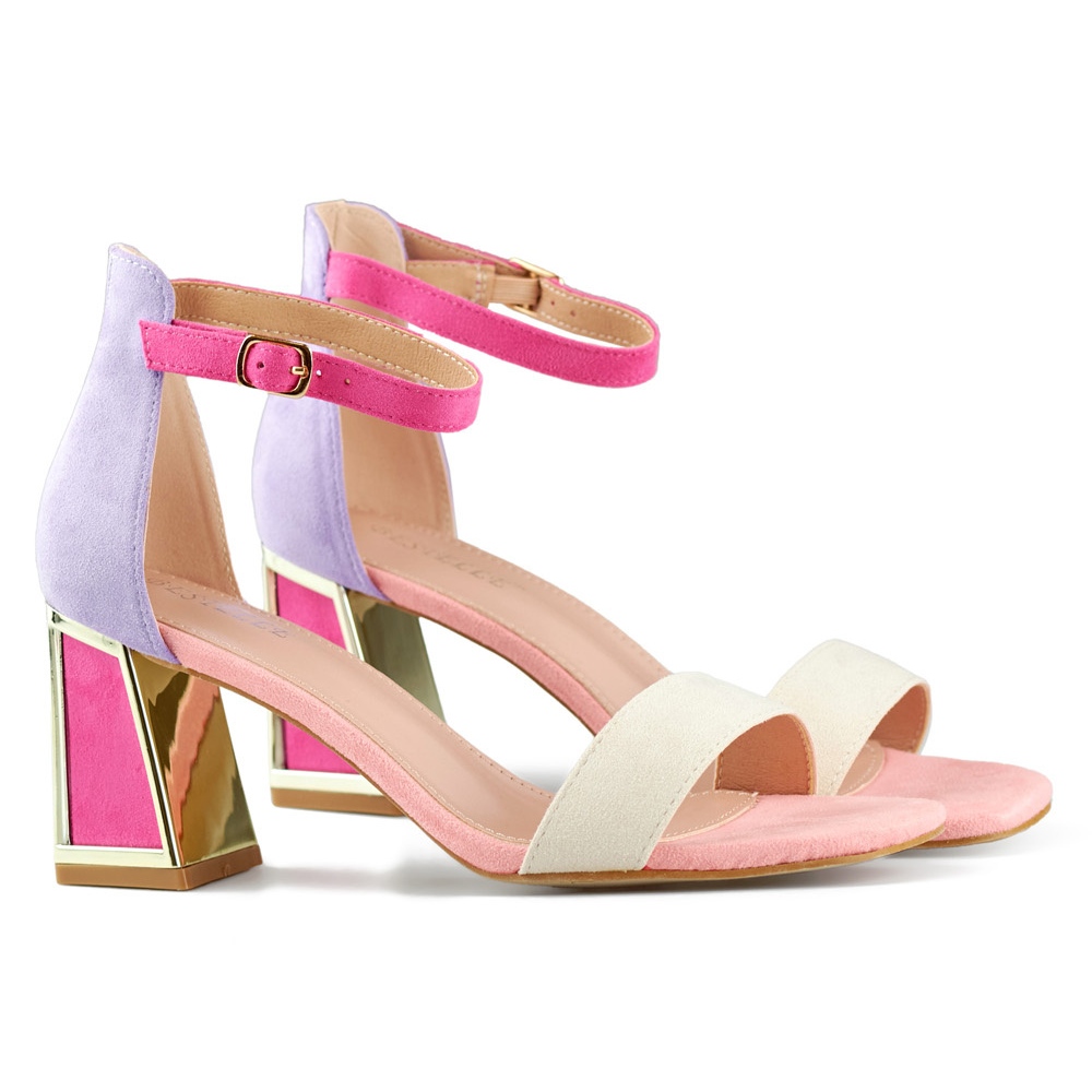 Sandalias de mujer rosa de tacón con cierre al tobillo