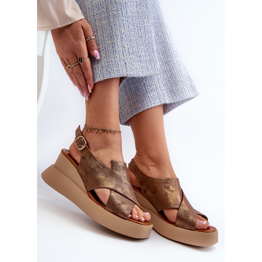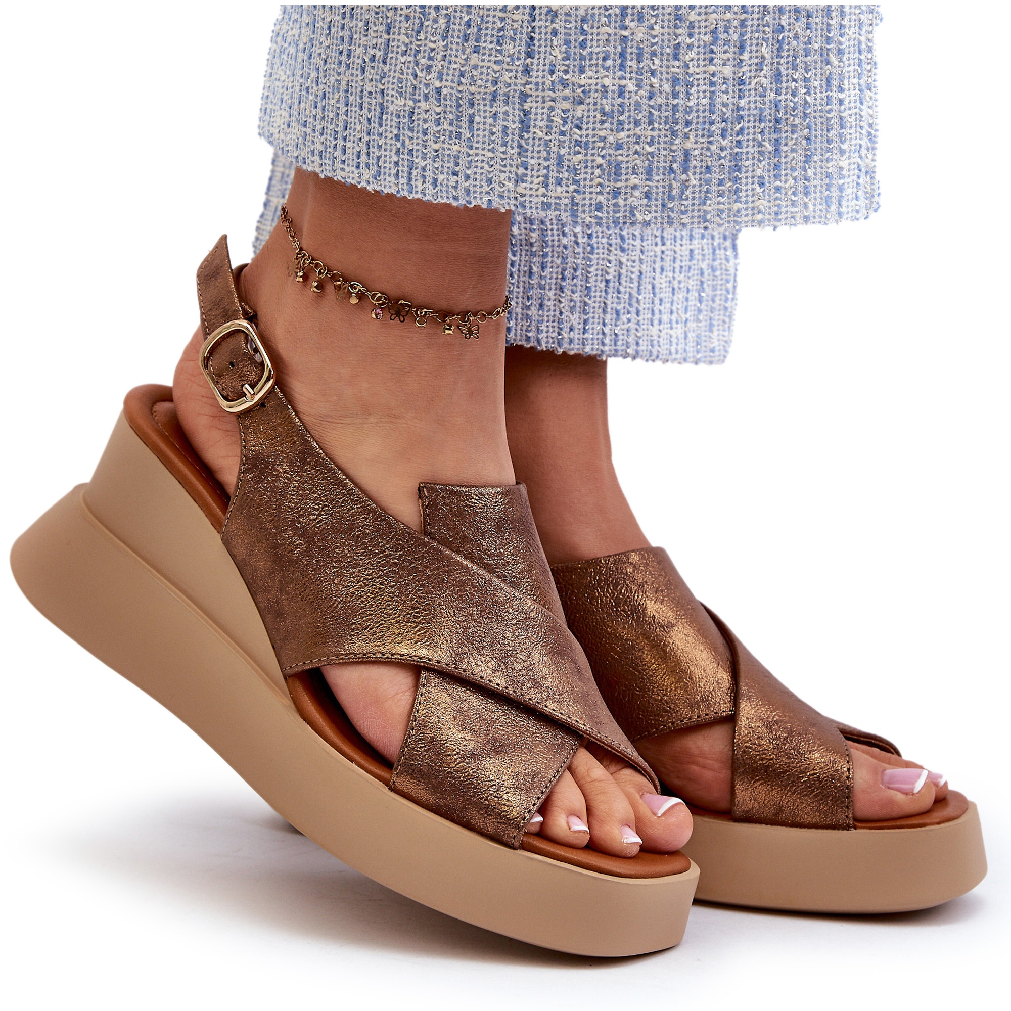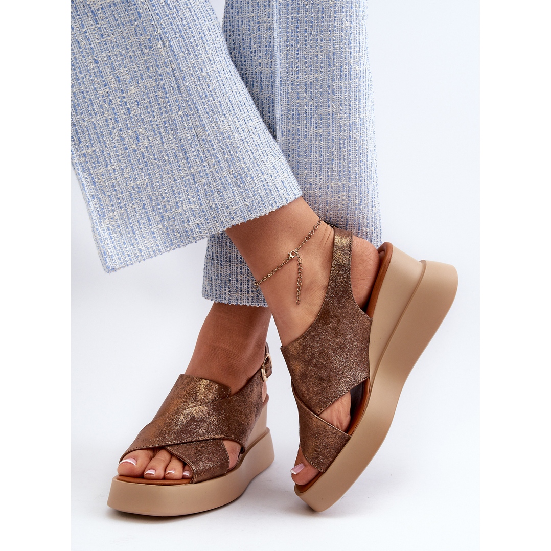 Las sandalias de mujer Jezzi en color cobre son una elección perfecta para cada día de verano. Confeccionados en ecopiel de alta calidad, combinan elegancia y comodidad, lo que los convierte en un complemento ideal para varios estilos. Gracias a la plataforma y la cuña estables, estas sandalias ofrecen no solo un aspecto único, sino también comodidad de uso.