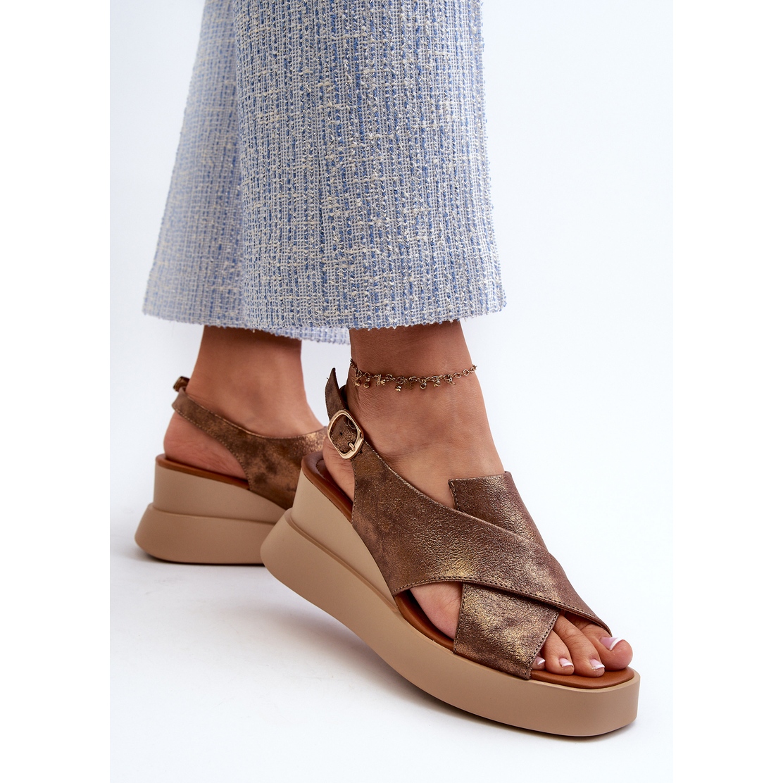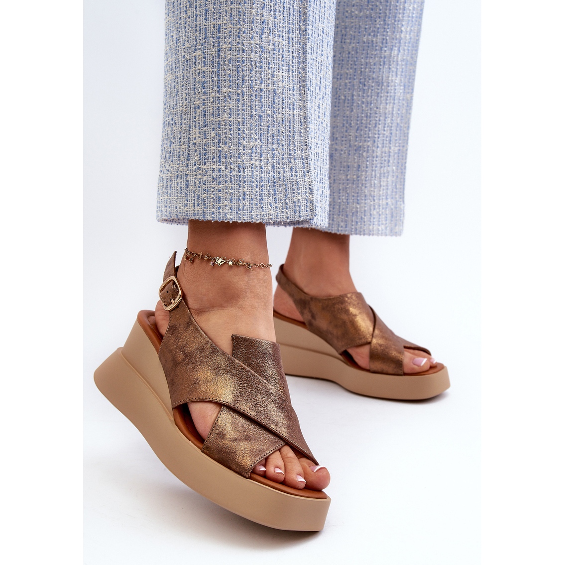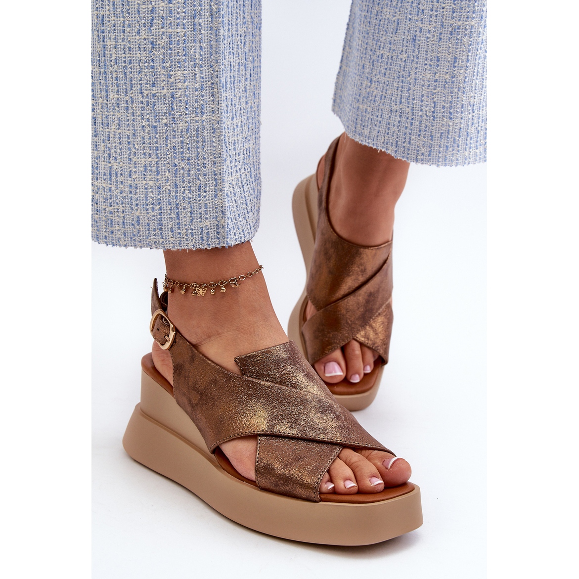 Las sandalias de mujer Jezzi en color cobre son una elección perfecta para cada día de verano. Confeccionados en ecopiel de alta calidad, combinan elegancia y comodidad, lo que los convierte en un complemento ideal para varios estilos. Gracias a la plataforma y la cuña estables, estas sandalias ofrecen no solo un aspecto único, sino también comodidad de uso.