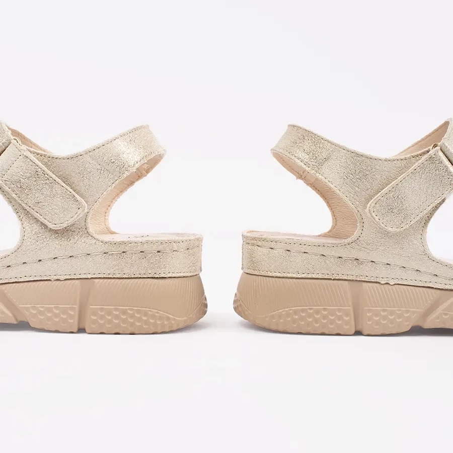 La plataforma alta con una altura de 4 cm no solo proporciona un aspecto de moda, sino también comodidad, lo que hace que el uso de estas sandalias sea pura placer. La plantilla de cuero natural garantiza una ventilación y conveniencia adecuadas durante la ropa a largo plazo, lo que los convierte en una excelente opción para cualquier ocasión. Una ventaja adicional es la hebilla, que no solo hace que sea más fácil ponerse sandalias, sino que también les permite combinar perfectamente con su figura.