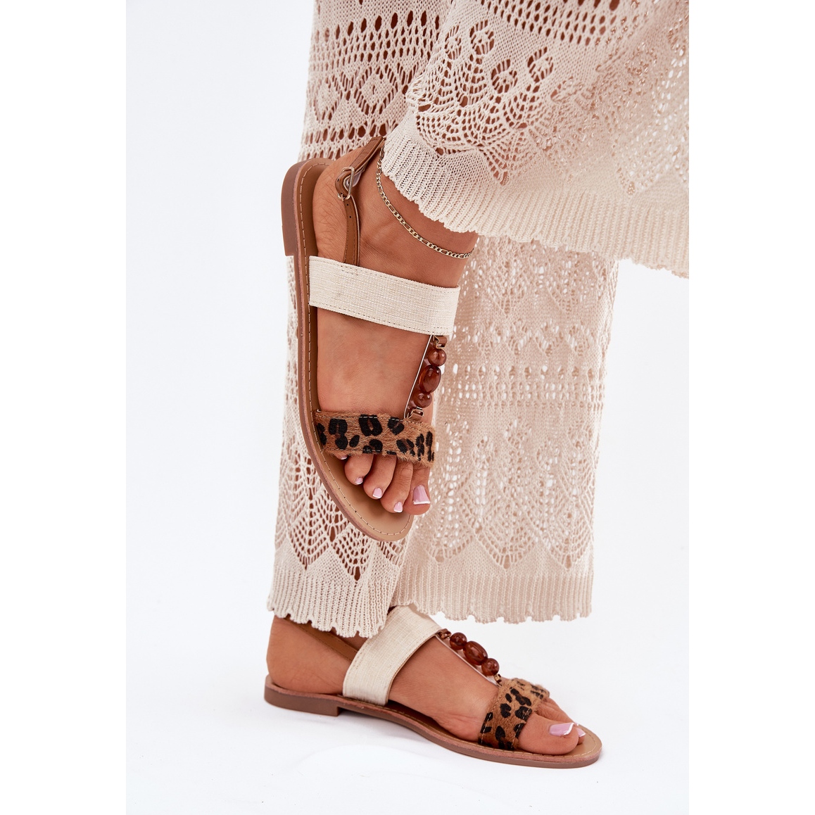 Detalles: Sandalias de mujeres planas con cuentas de leopardo marrón estampado