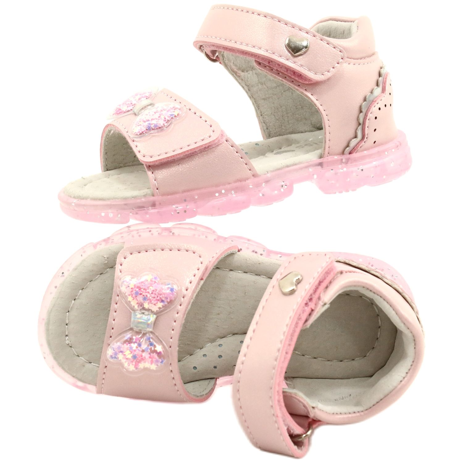 Fabricadas en piel ecológica, las sandalias tienen una plantilla perfilada de piel natural, que reduce eficazmente la sudoración de los pies, lo que es especialmente importante en los días calurosos. En particular, sus lazos rosas y transparentes con estrellas en su interior les dan un encanto único, enfatizando el material liso.