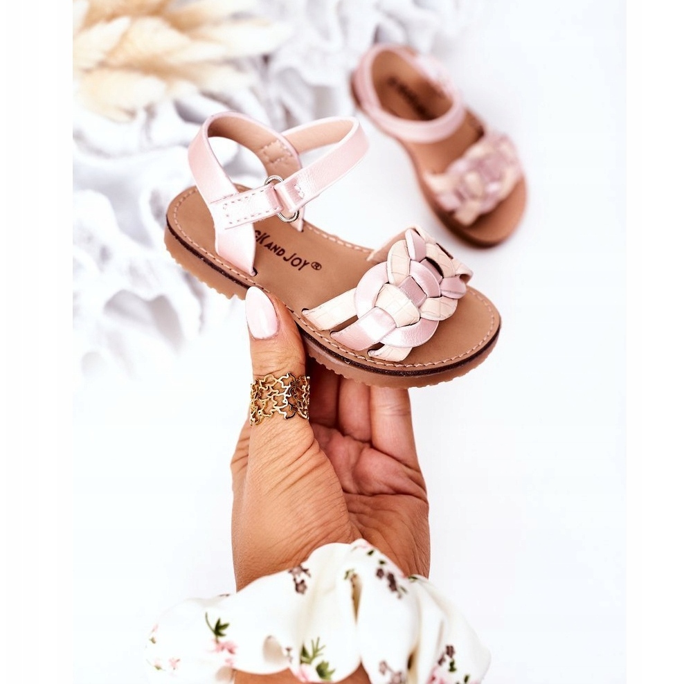 Detalles: Sandalias de niñas con un patrón de serpiente rosa