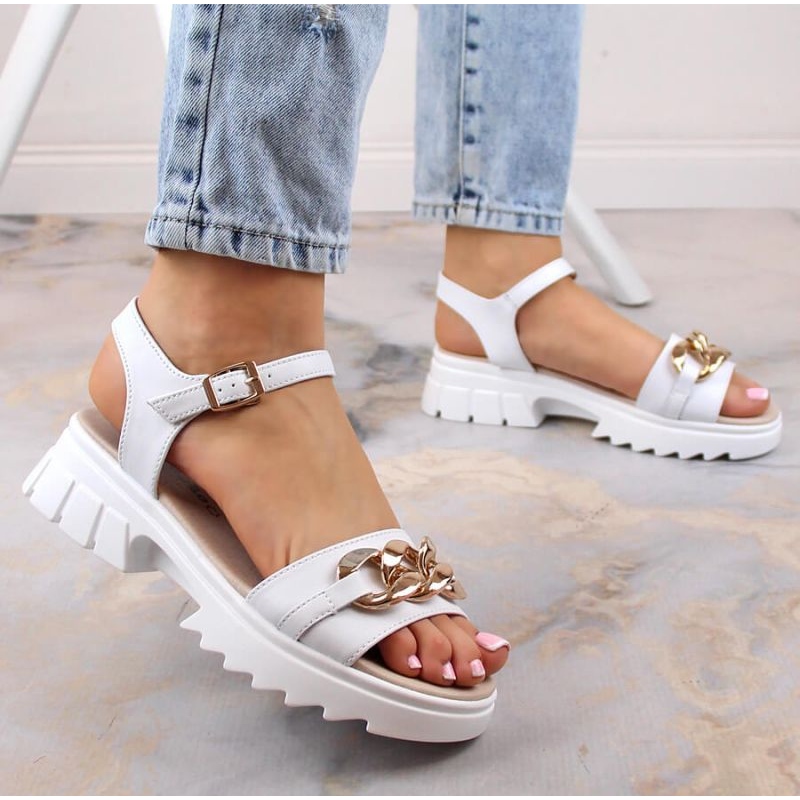 Detalles: Sandalias de piel con cadena Filippo W DS4614 blanco