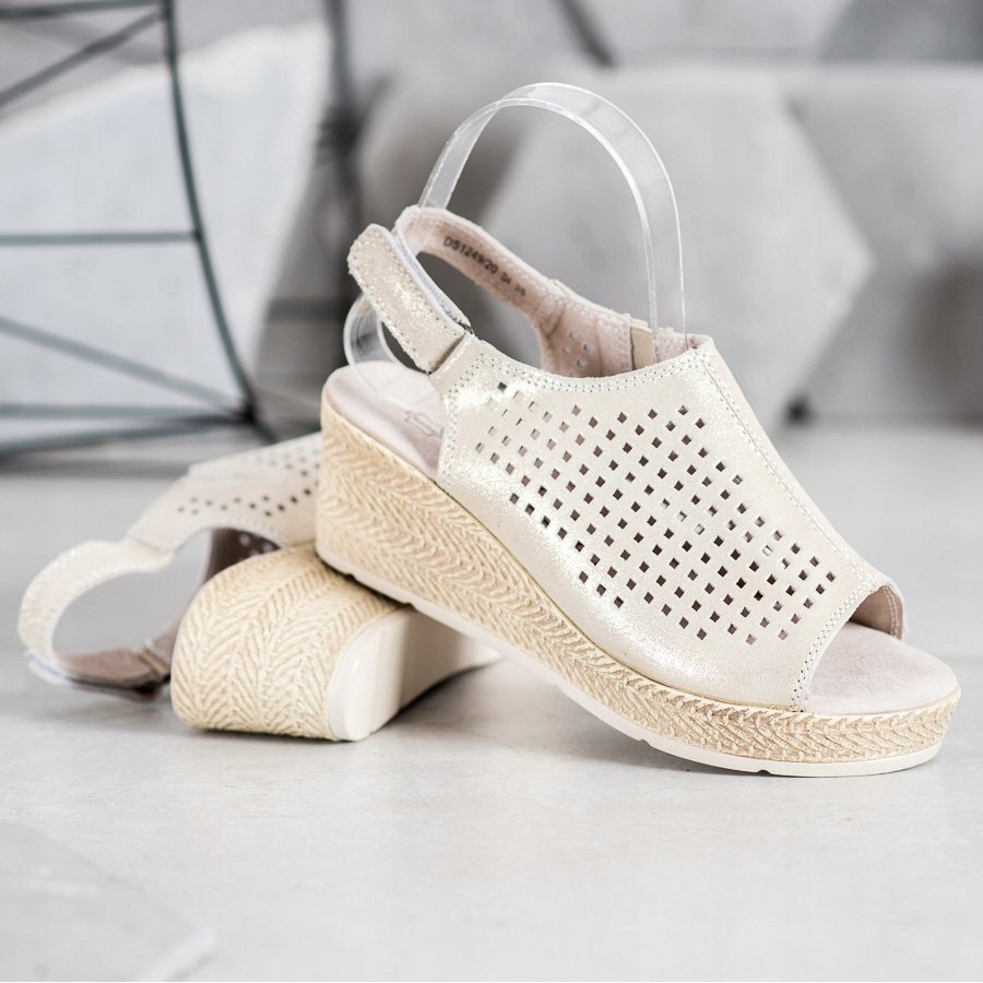 El modelo se caracteriza por un brillo sutil y un patrón calado que aporta ligereza y originalidad. El talón abierto y la ausencia de puntera hacen que las sandalias no sólo sean elegantes, sino también muy cómodas. Además, la altura del tacón de 6 cm garantiza una altura óptima y añade elegancia a cualquier estilismo.