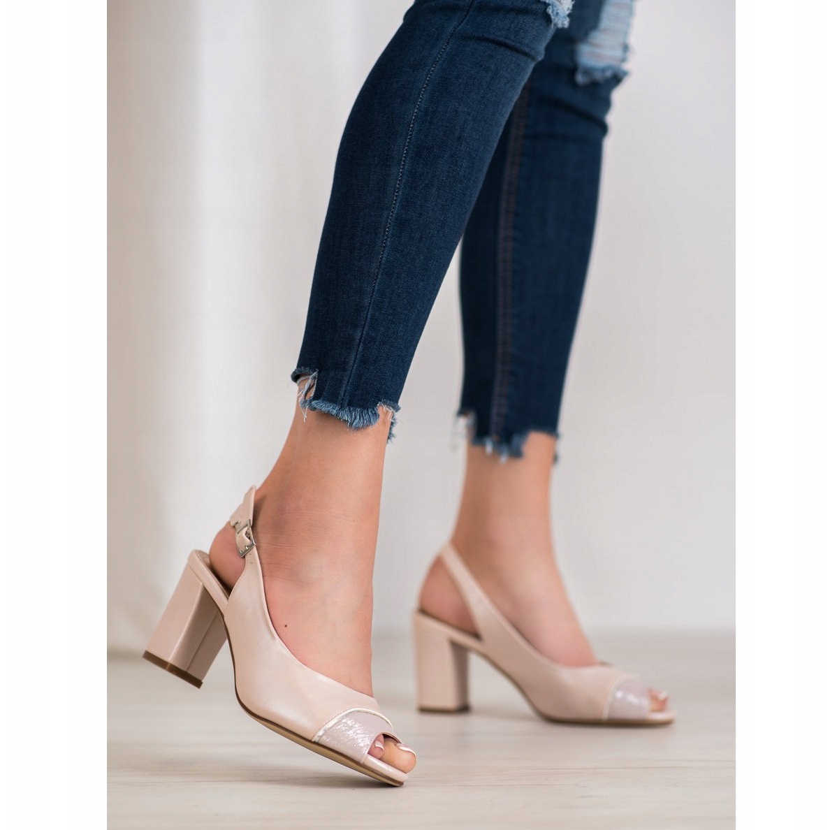 Las sandalias se caracterizan por tener el talón y la puntera abiertos, lo que las hace perfectas para los días más cálidos. La correa decorativa dorada en la puntera añade elegancia y elegancia, y la hebilla en la correa superior garantiza comodidad y estabilidad.