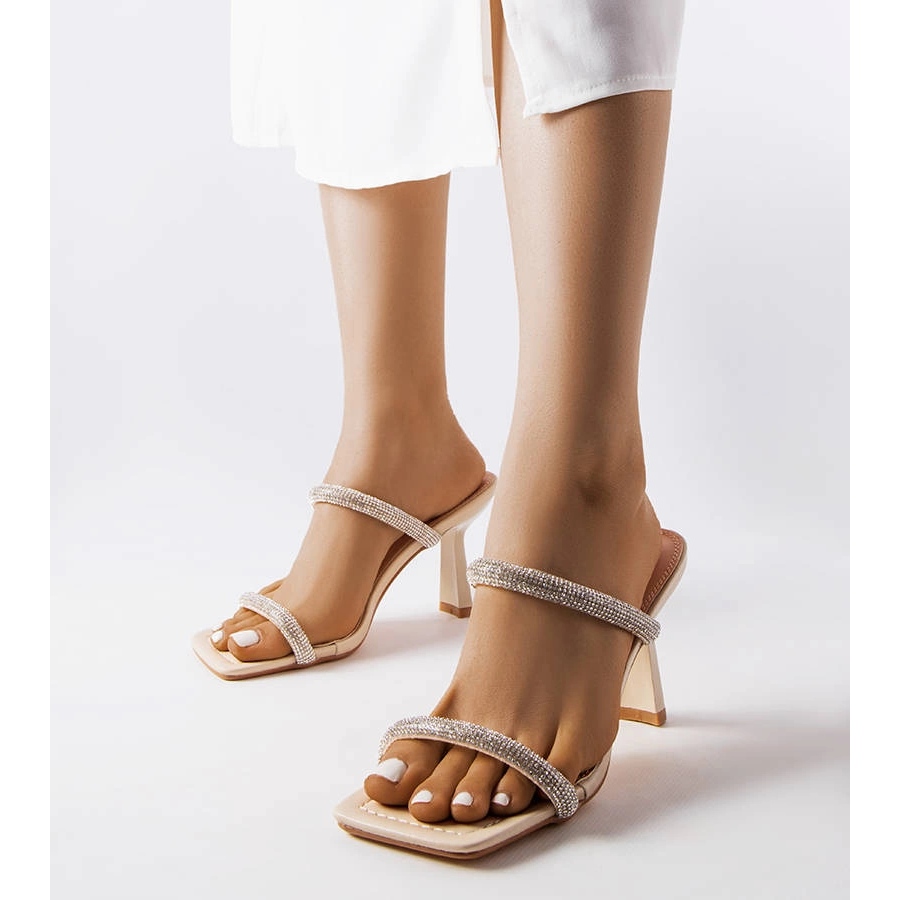 Las chanclas Evelina Beige combinan un aspecto elegante con soluciones prácticas: un cómodo inserto ecológico de cuero, diamantes de imitación decorativa y un pasador estable con una altura clásica. Este es un modelo universal para muchas estilizaciones de verano que agregarán estilo a cada mujer.