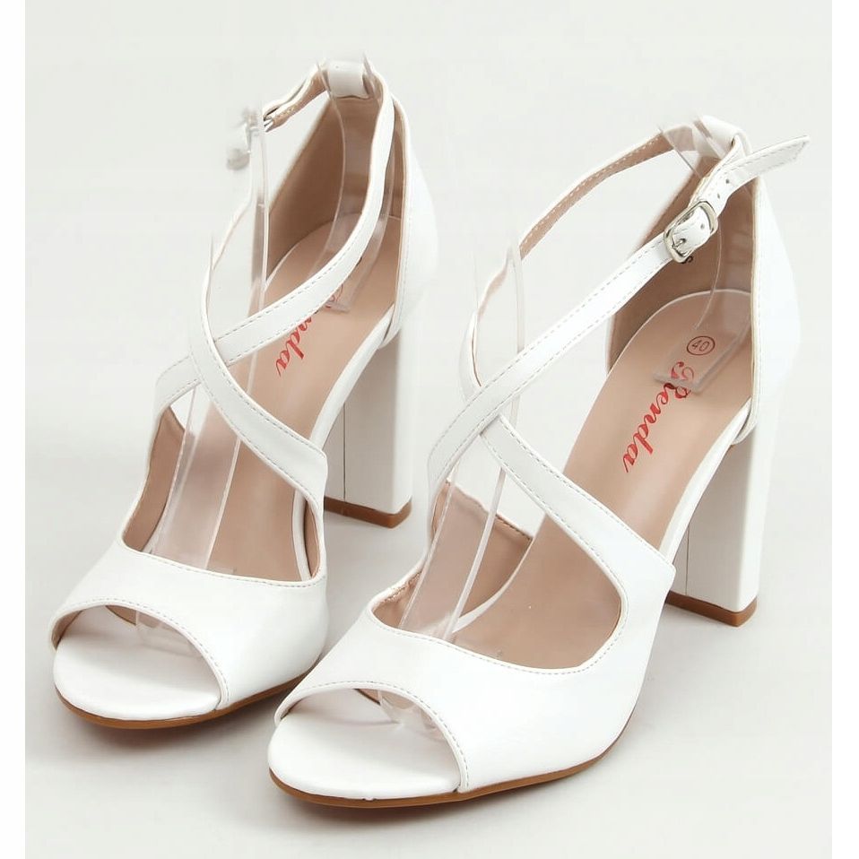 Inna marka Sandalias de tacón blancas S-837 White blanco