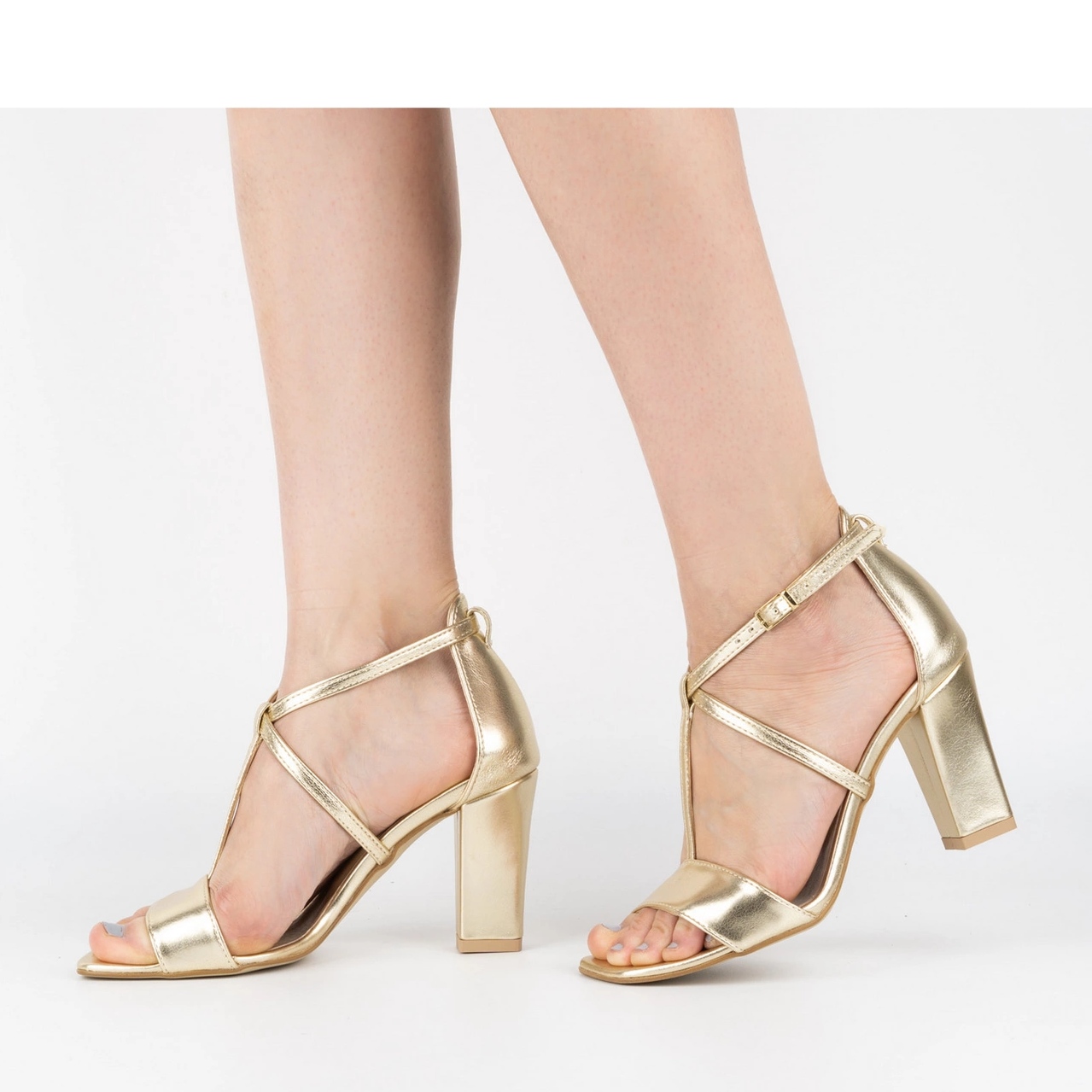 El color dorado aporta elegancia, haciéndolos perfectos tanto para estilos cotidianos como para estilos más formales. El tacón en bloque de 8 cm de altura garantiza la estabilidad, para que puedas usarlos en diversas ocasiones sin preocupaciones. La plantilla forrada con piel natural asegura una adecuada sujeción del pie, lo que además aumenta la comodidad al llevarlas.