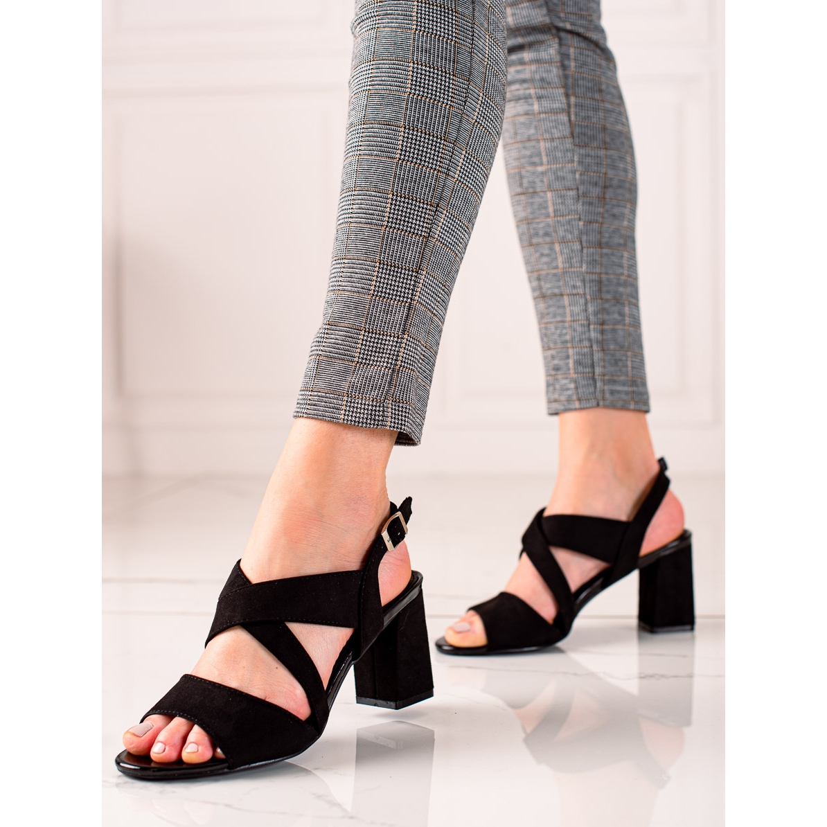 Las sandalias se caracterizan por tener el talón abierto y la ausencia de puntera, lo que garantiza la máxima comodidad y transpirabilidad. El tacón de 8 cm de altura en forma de bloque aporta elegancia y estabiliza tu pisada. Fabricadas en imitación ante de alta calidad y piel ecológica, estas sandalias no solo son elegantes, sino también ecológicas.