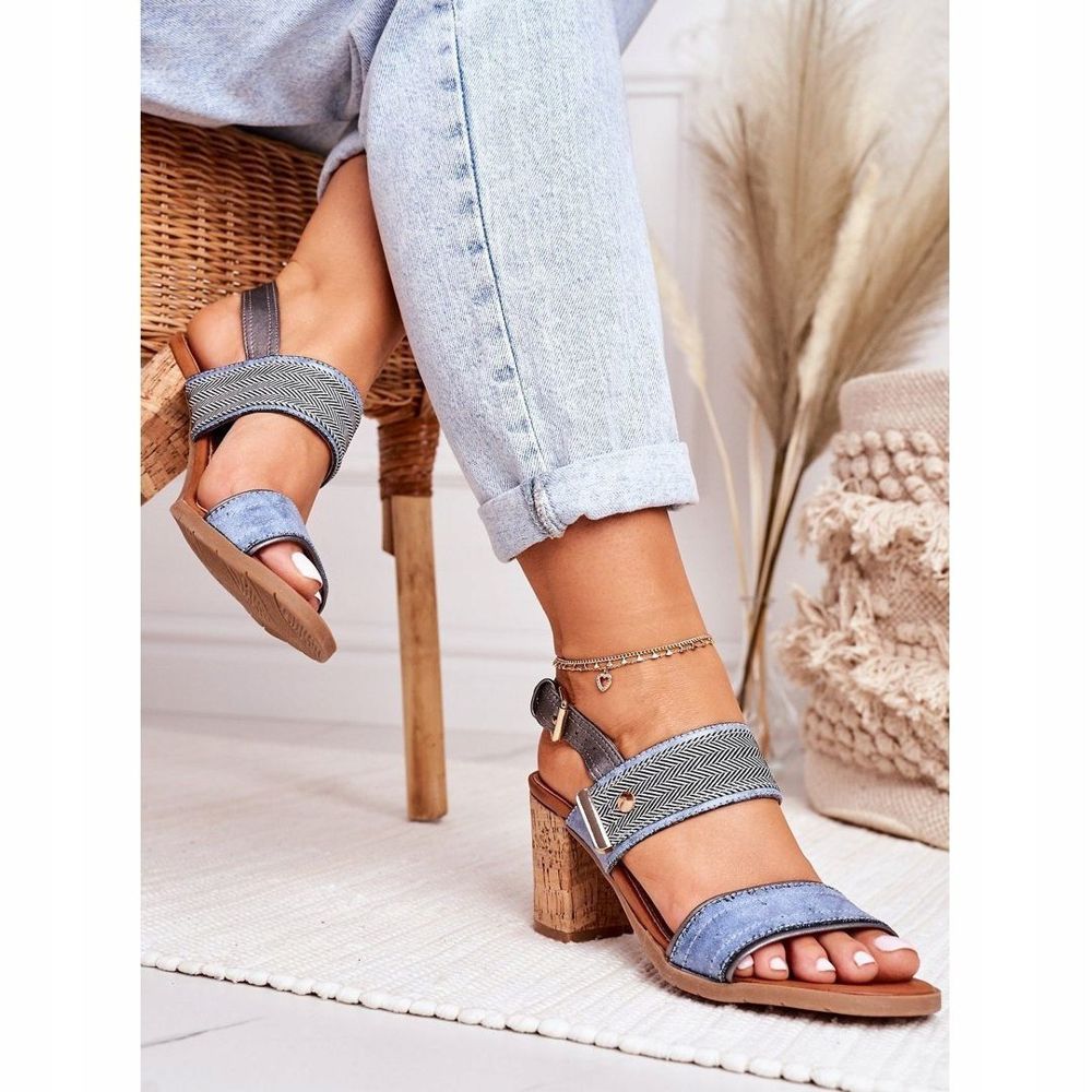 Detalles: EVE Sandalias Emma Blue en una barra de corcho marrón azul