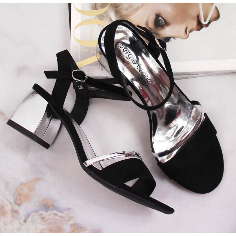 Detalles: Sandalias en el puesto de Sergio Leone W SK372A negro y plata