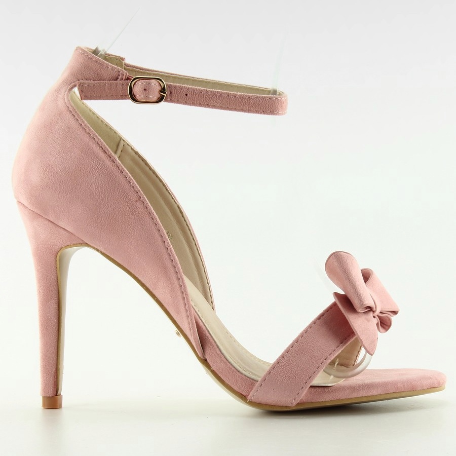 Sandalias de tacón 6101 rosa - rosa, encantadoras y extremadamente femeninas. Confeccionados en ante ecológico, se distinguen por un fino tacón de 10,5 cm que estiliza la figura. Un cierre de hebilla en el tobillo garantiza una sujeción segura del pie, y un sutil lazo en la correa delantera añade un carácter delicado y romántico. El modelo con la parte delantera abierta (sin nariz) es perfecto para las noches de verano y ocasiones especiales.