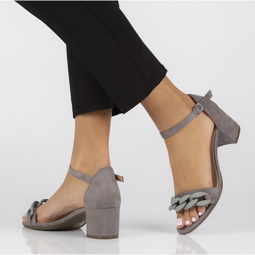 El bloque de 5,5 cm de alto utilizado garantiza estabilidad y comodidad de uso, y la plataforma de 0,5 cm de alto añade comodidad adicional. La forma redonda de la puntera favorece la libertad de movimiento y el cierre con hebilla permite un fácil ajuste al pie. Además, la cadena decorativa es un acento elegante que llama la atención.