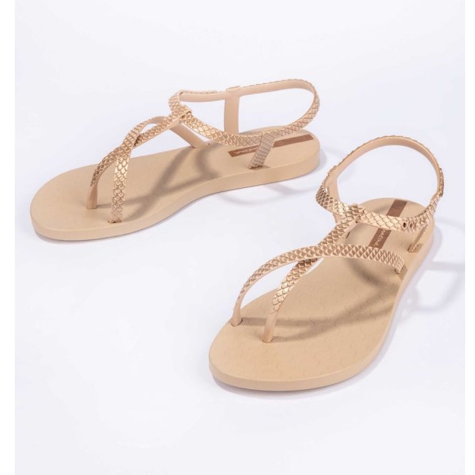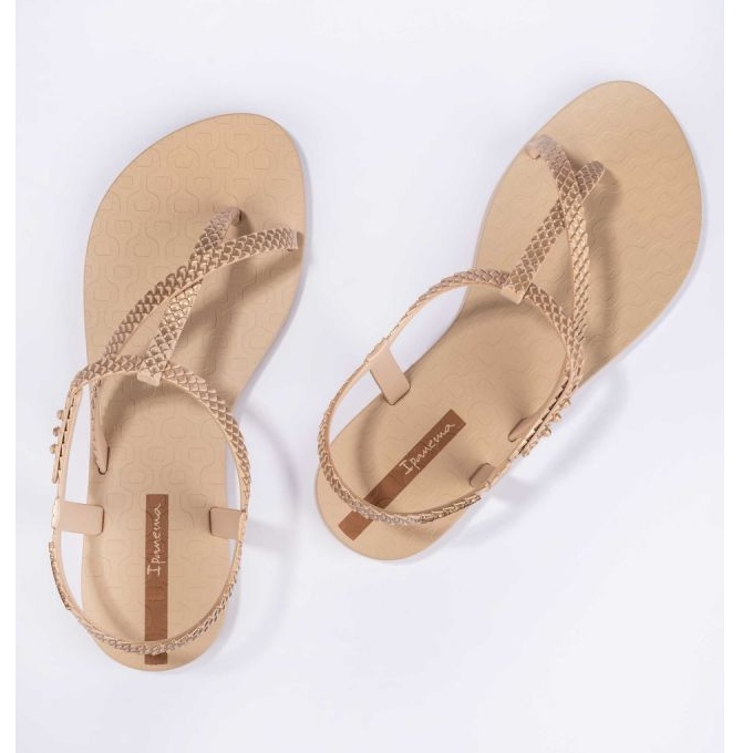 Las sandalias Ipanema Class Wish II Fem W 82931 20811 en color beige con detalles dorados adicionales son la combinación perfecta de moda, comodidad y ecología. El diseño de la chancla fabricada en material sintético garantiza una fácil colocación y una excelente comodidad de uso en los días más cálidos. El tacón plano garantiza estabilidad y comodidad, lo que los convierte en la elección perfecta para cualquier ocasión, desde un paseo por la ciudad hasta relajarse en la playa.