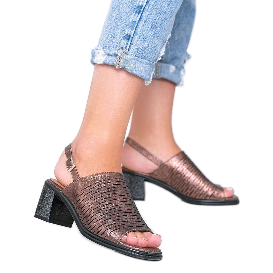 Detalles: Sandalias marrones metalizadas en el poste Cusi marrón