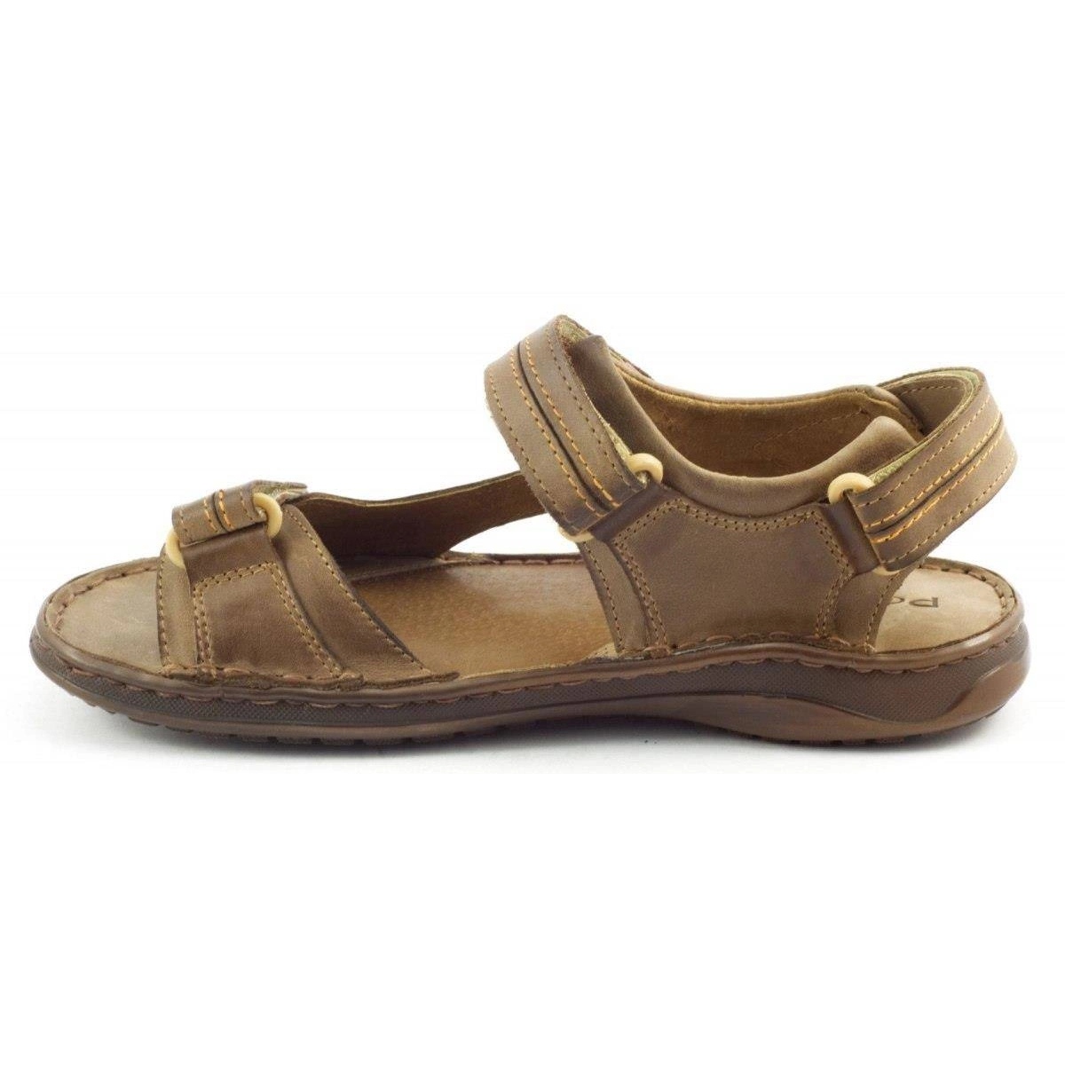 Las sandalias para hombre en un estilo deportivo atraerán a los hombres independientemente de su edad. Este es el tipo de calzado que todo el mundo debería tener, porque funcionará tanto durante un viaje de vacaciones como como calzado de casa de verano y de fin de semana. La ventaja de esta elección es el hecho de que las solapas están hechas de cuero 100% natural. Esta es una excelente comodidad para los pies, incluso si las sandalias se usan directamente descalzo. Agradable al tacto, el material da la impresión de caminar descalzo, pero al mismo tiempo aísla bien del suelo. Las SANDALIAS tienen doble velcro, con el que podrás ajustar suavemente su ancho. Las SANDALIAS para hombre están disponibles en colores neutros, por lo que es fácil combinarlas con tu atuendo. Son livianos y ciertamente no ocuparán mucho espacio en su equipaje. Son producidos por un fabricante polaco, lo que es garantía de calidad. Las sandalias de hombre también son fáciles de mantener limpias y no requieren cuidados especiales. La plantilla interior perfilada sostiene la planta del pie. Su apariencia simple es universal.