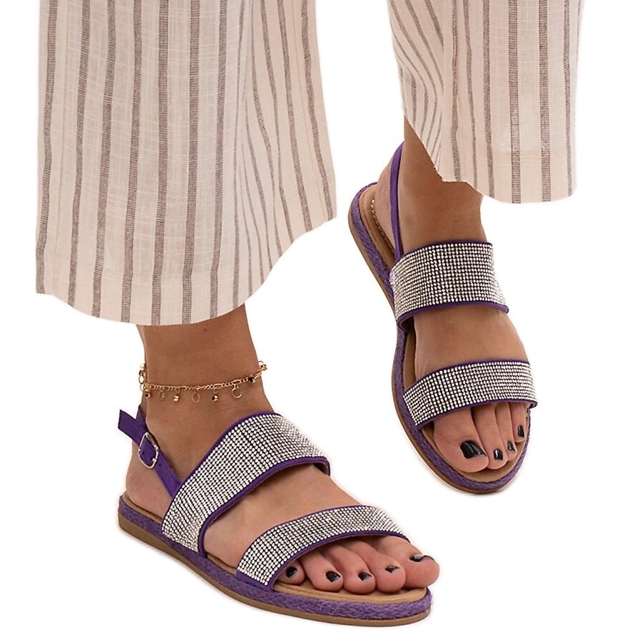 Sandalias moradas decoradas con circonitas Carvalia púrpura