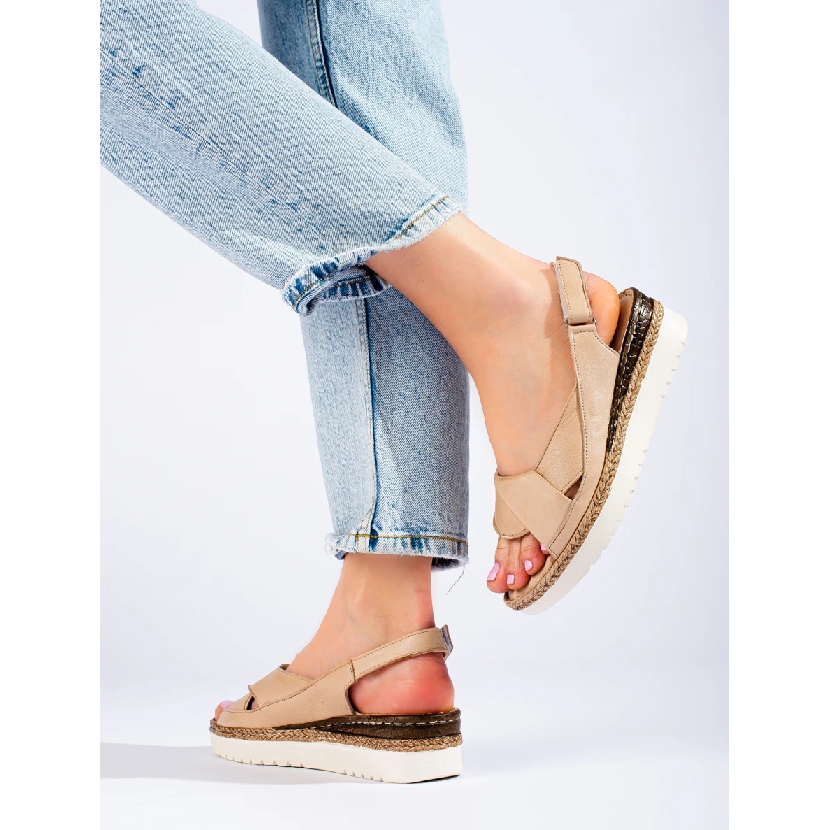 Descubre la comodidad y la elegancia con las sandalias de cuña baja para mujer de W. Potocki en color beige. Estos zapatos clásicos son perfectos para muchas ocasiones, desde fiestas nocturnas hasta salidas cotidianas. El **talón abierto** y el **cierre con hebilla** garantizan facilidad de compra y ajuste al pie, y la **cuña de 5 cm** garantiza estabilidad y comodidad de uso durante todo el día.