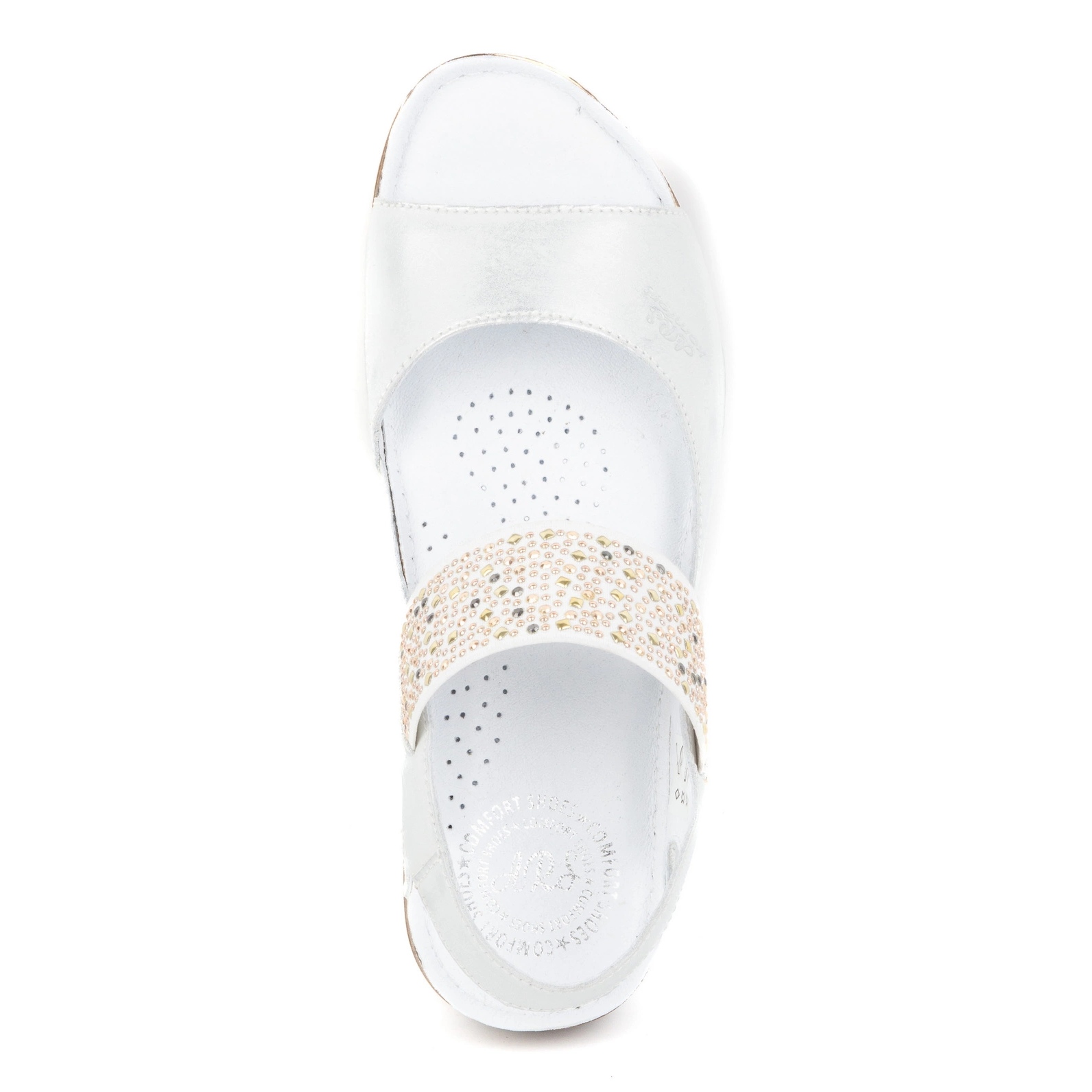 Olivier 0546 se distinguen por su original acabado con delicadas pedrería que les confieren un carácter elegante y sutil. La altura del tacón de 3,5 cm hace que los zapatos resalten las piernas y al mismo tiempo sean cómodos de llevar. Gracias al diseño sin cordones, ponerse y quitarse las sandalias resulta extremadamente fácil.