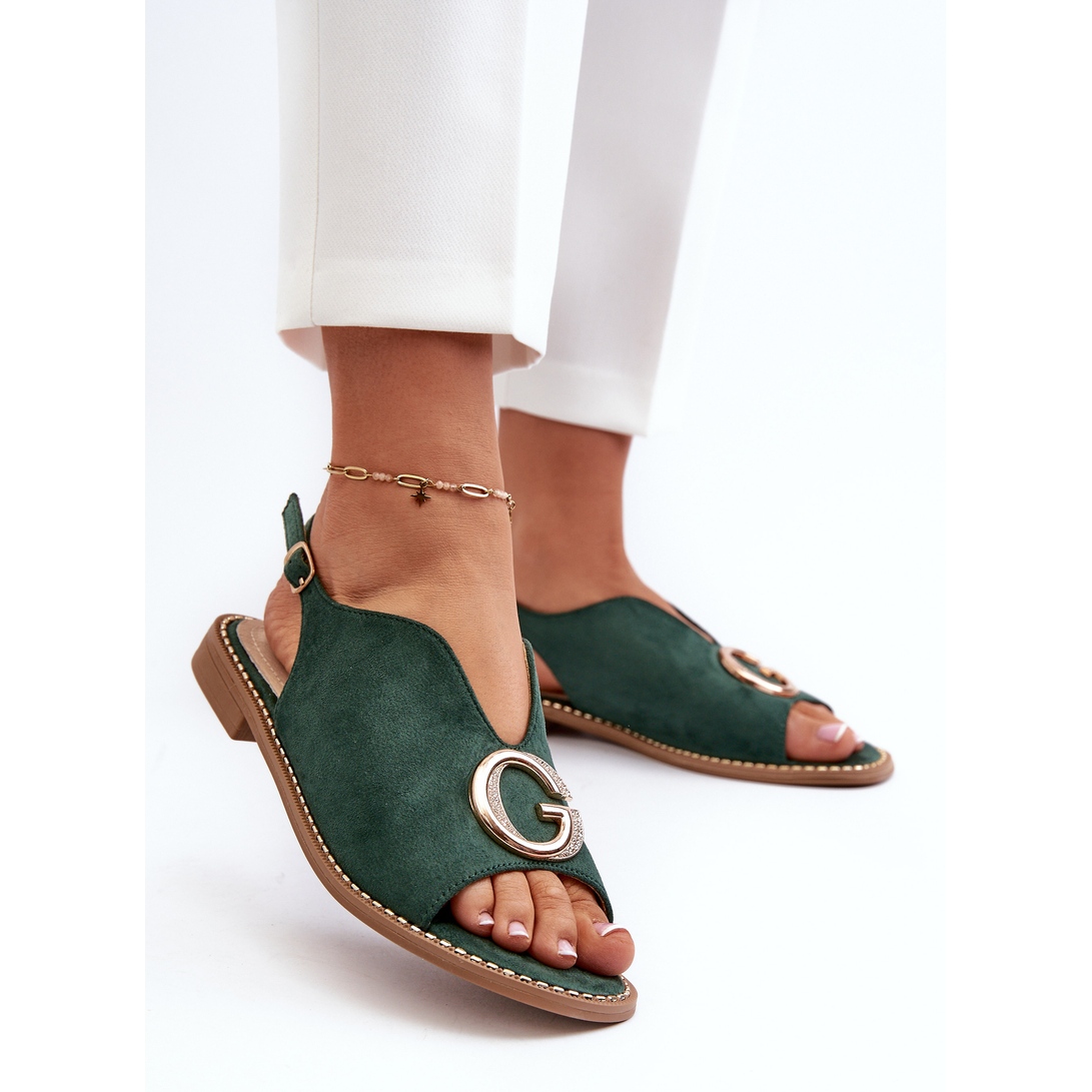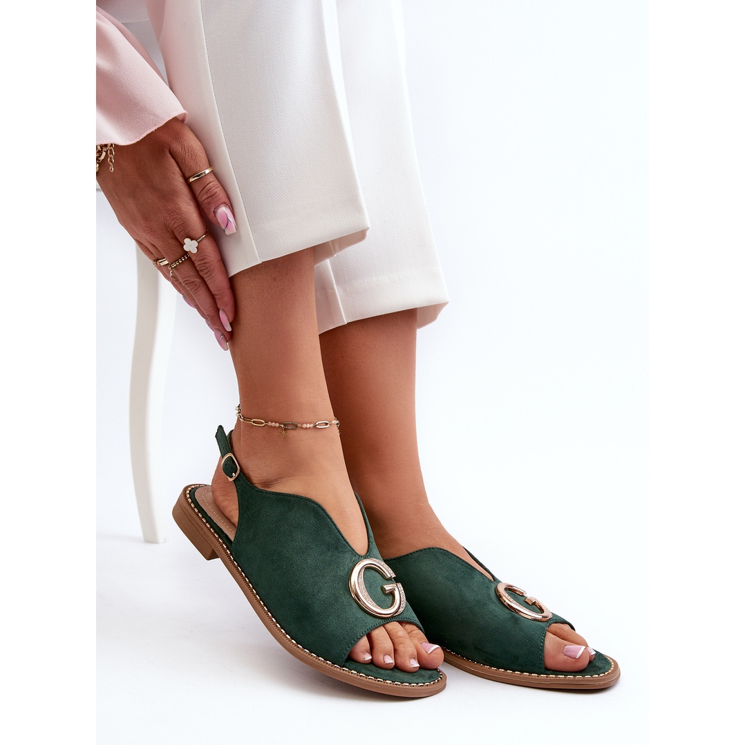 Detalles: Sandalias Mujer Elegantes Con Adorno, Ante Ecológico S.Barski KV27-058 Verde