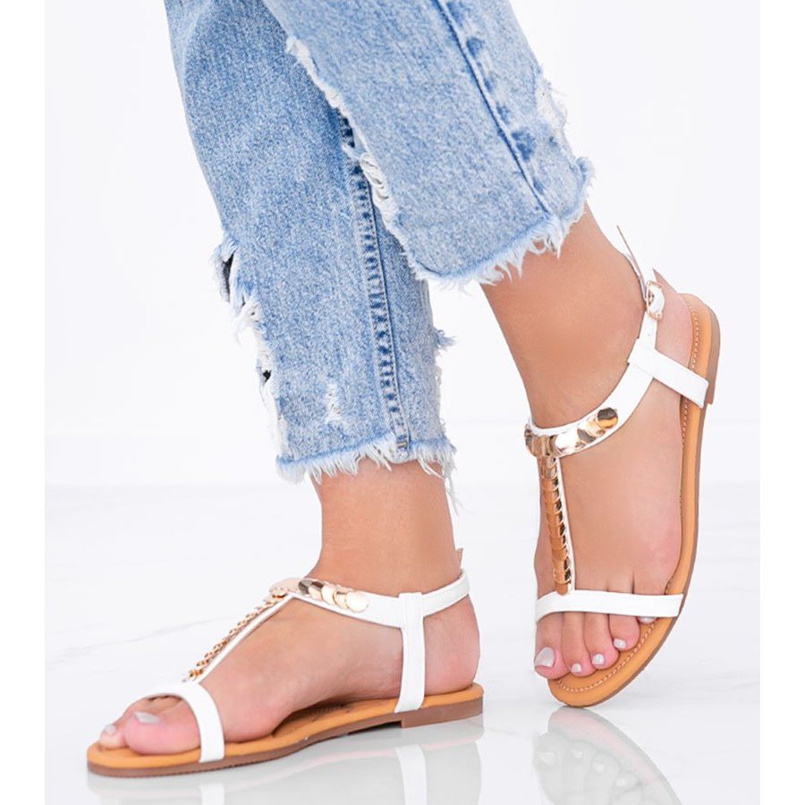 Descubra las sandalias blancas Emmie para mujer: ¡la quintaesencia del estilo y la comodidad del verano! Estas sandalias únicas, fabricadas en piel ecológica de alta calidad, combinan elegancia y funcionalidad. Se caracterizan por un original diseño con una atractiva aplicación de láminas de oro, que les aporta un encanto único.