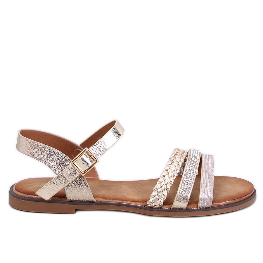 ¡Descubre la elegancia del verano con las sandalias de mujer Pasini Gold! Estas sandalias planas metálicas son imprescindibles para cualquier estilo de verano. Se distinguen no sólo por su color dorado único, sino también por una aplicación brillante de pequeñas piedras que brillan sutilmente al sol. Su corte clásico resaltará perfectamente tus piernas, gracias al cierre ajustable que acentúa el tobillo.