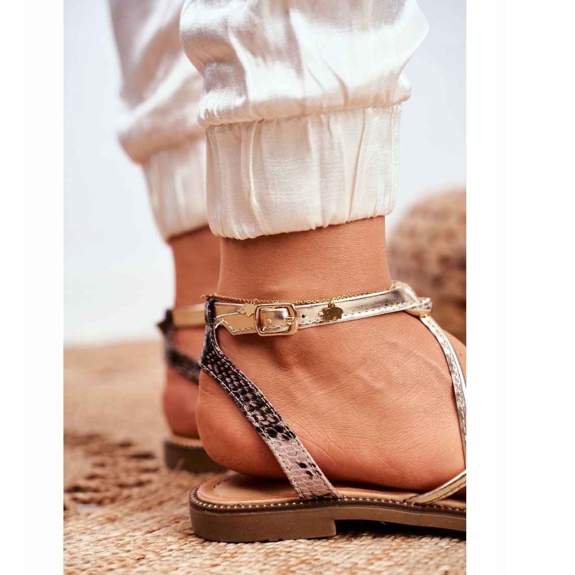 La plantilla extremadamente suave garantiza comodidad durante todo el día y la correa ajustable en el tobillo garantiza que cada pie pueda disfrutar de un ajuste perfecto. Las sandalias tienen un tacón plano de 1,5 cm, lo que las hace no sólo elegantes, sino también prácticas, perfectas para paseos por la ciudad o tardes relajantes en la playa.