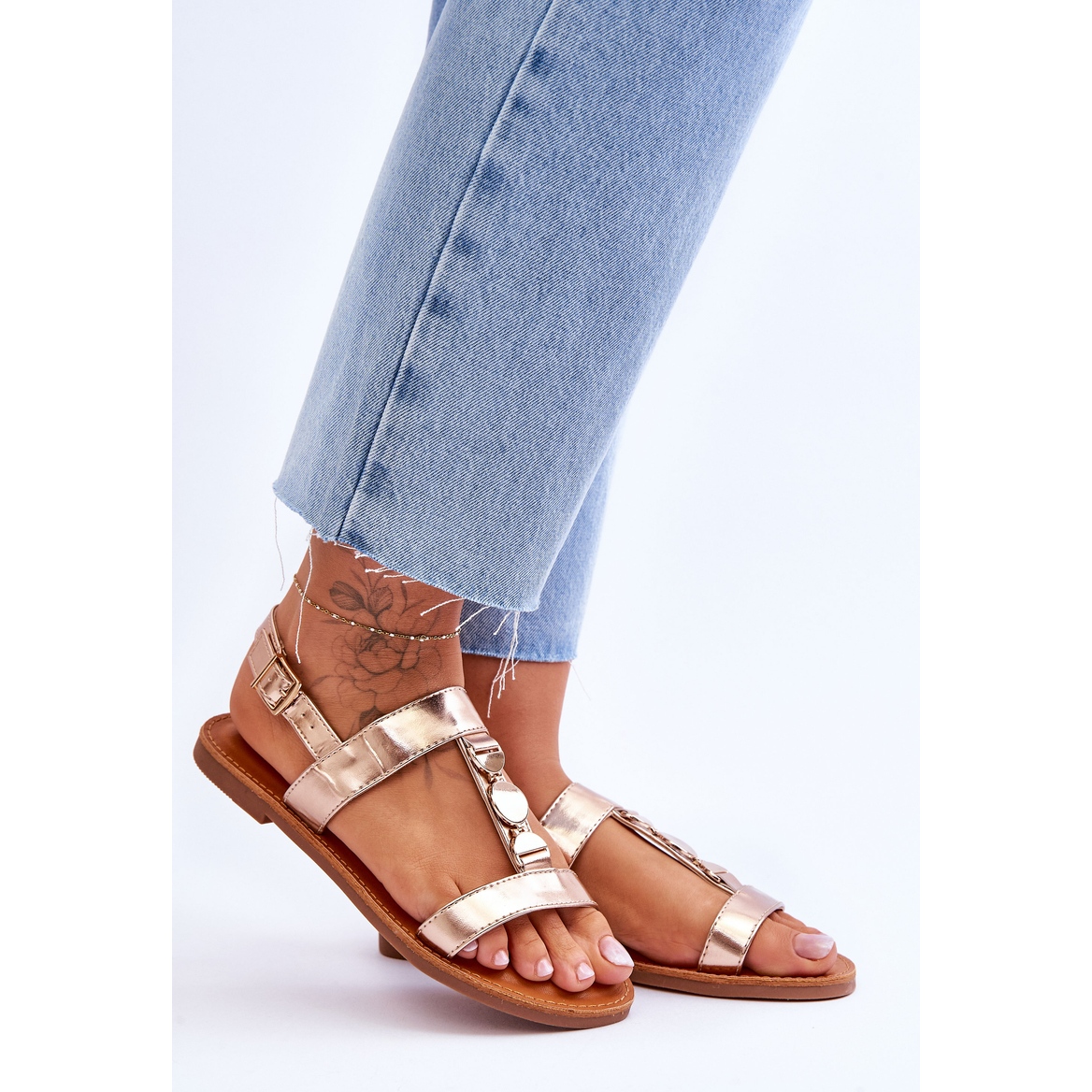 - Modelo: Sandalias con detalles dorados