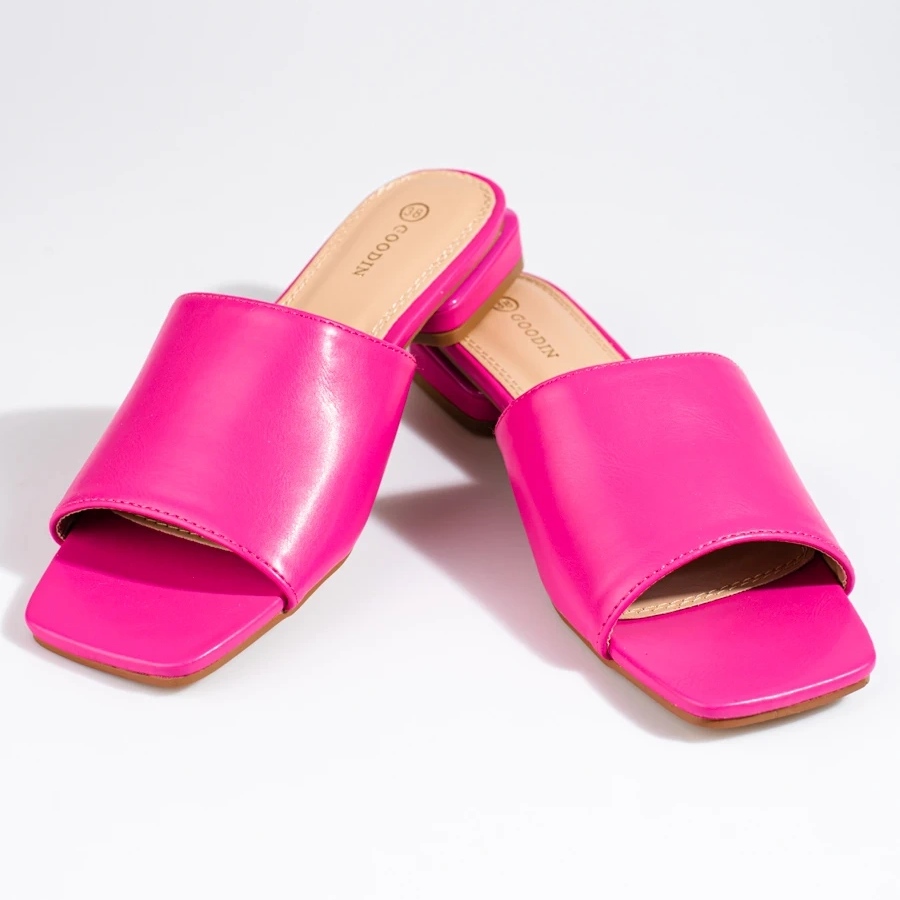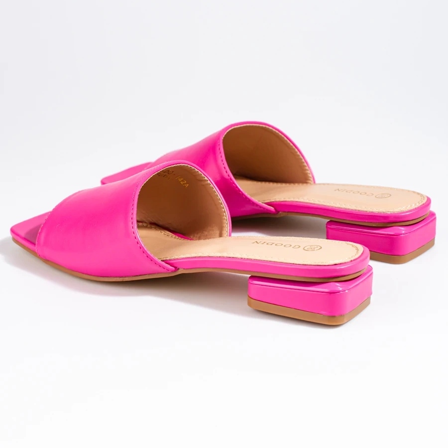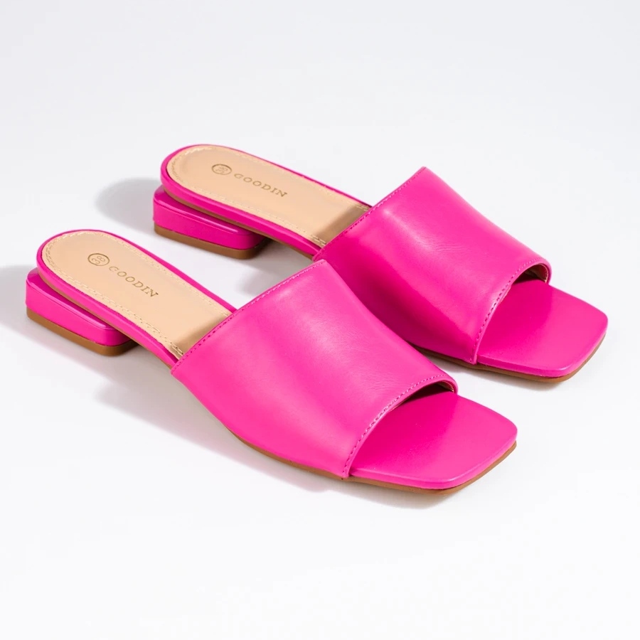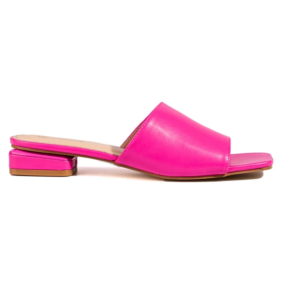 Fabricadas en piel ecológica de alta calidad, las chanclas son agradables al tacto y fáciles de limpiar. El interesante color rosa les da frescura y les permite destacar entre la multitud. Además, la falta de puntera y el talón abierto enfatizan la ligereza y transpirabilidad de los zapatos, lo que los convierte en una opción ideal para los días más cálidos.