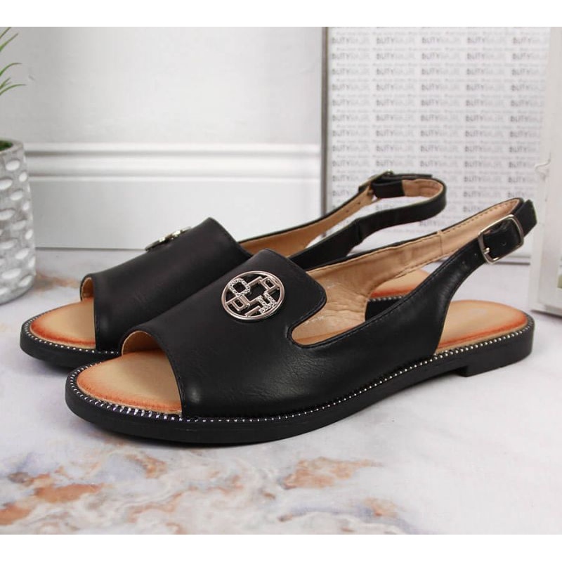 Inna marka Sandalias negras con adorno W Filippo dorado