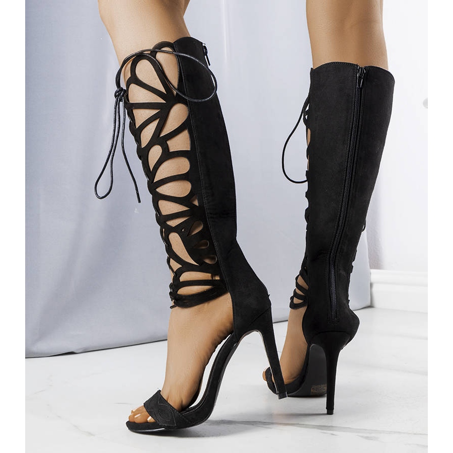 Las sandalias se cierran con una práctica cremallera en la parte trasera y tienen cordones a lo largo de todo el largo, lo que permite un ajuste perfecto a cada pierna. Los tacones altos de 11 cm enfatizan la figura y añaden confianza en uno mismo.