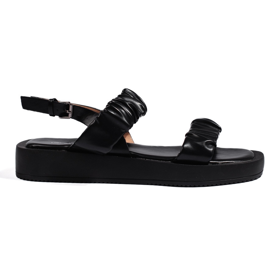Las sandalias se caracterizan por una plataforma de 3 centímetros y un tacón de 5 centímetros, lo que permite alargar sutilmente la silueta sin renunciar a la comodidad. La suela de plástico garantiza un agarre y una absorción de impactos adecuados. La plantilla fabricada en piel ecológica es agradable para los pies incluso cuando se usa durante muchas horas.