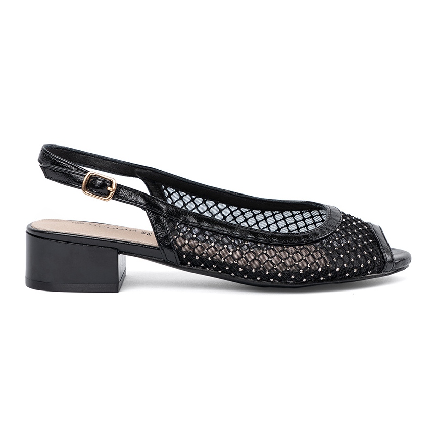 ¡Descubre elegancia y comodidad gracias a las sandalias negras Goodin con una malla decorativa! Estas sandalias únicas son una gran opción para las mujeres que desean ganar un elemento elegante y práctico en su guardarropa de verano. El clásico corte y el talón abierto los hacen combatir perfectamente con estilizaciones informales y más elegantes.