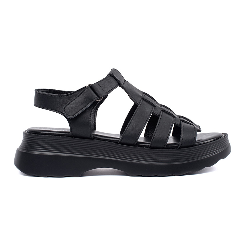 Las sandalias negras en la plataforma Goodin son la opción perfecta para las mujeres que valoran la elegancia y la comodidad. Hecho de cuero natural de alta calidad, estas sandalias aseguran no solo la durabilidad, sino también la comodidad de usar todo el día. Una fijación abierta y la falta de nariz los convierten en una excelente solución para los calurosos días de verano, garantizando una ventilación adecuada de los pies.