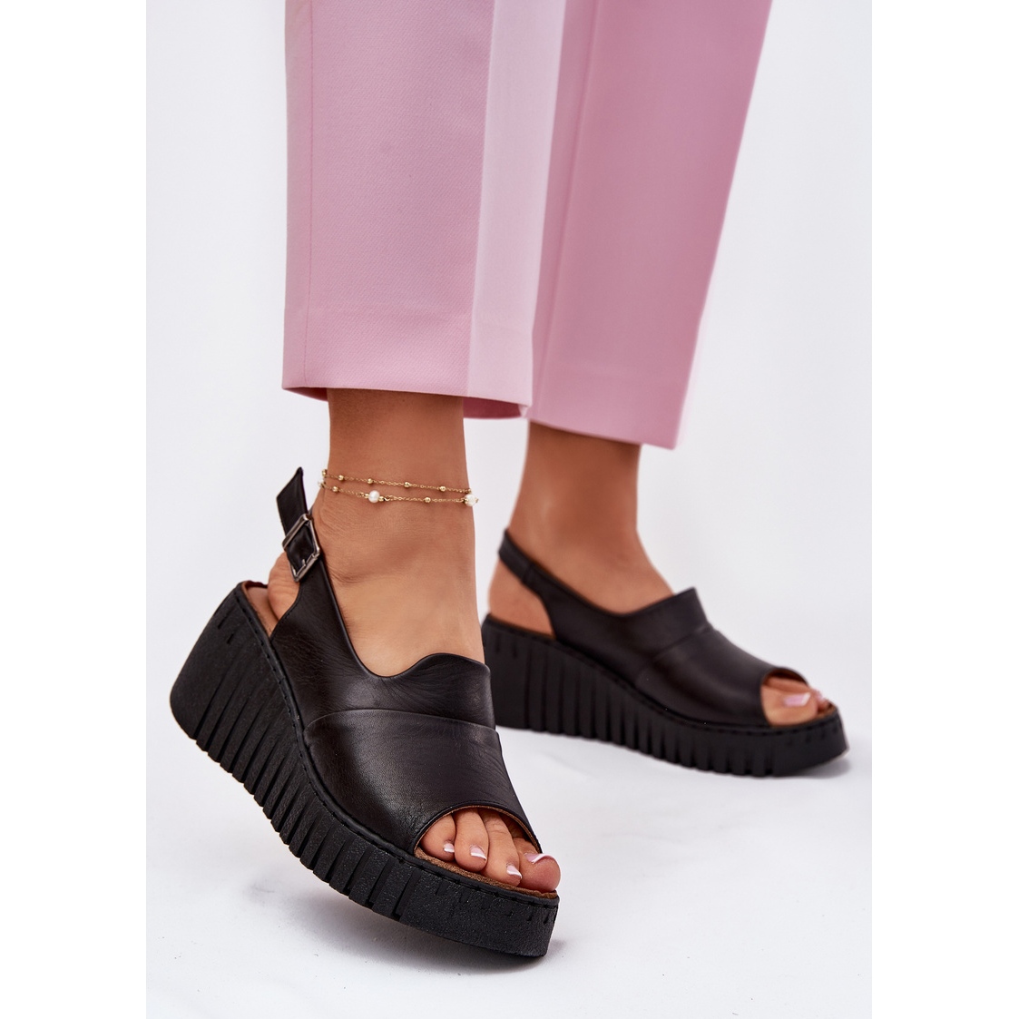 Las sandalias para mujeres hechas de cuero natural en la cuña Artiker 54C0791 en negro es la opción perfecta para las mujeres que valoran la elegancia y la comodidad en las estilizaciones de verano. Hecho de cuero natural de alta calidad, estas sandalias se deleitan no solo con la estética, sino también con la funcionalidad.