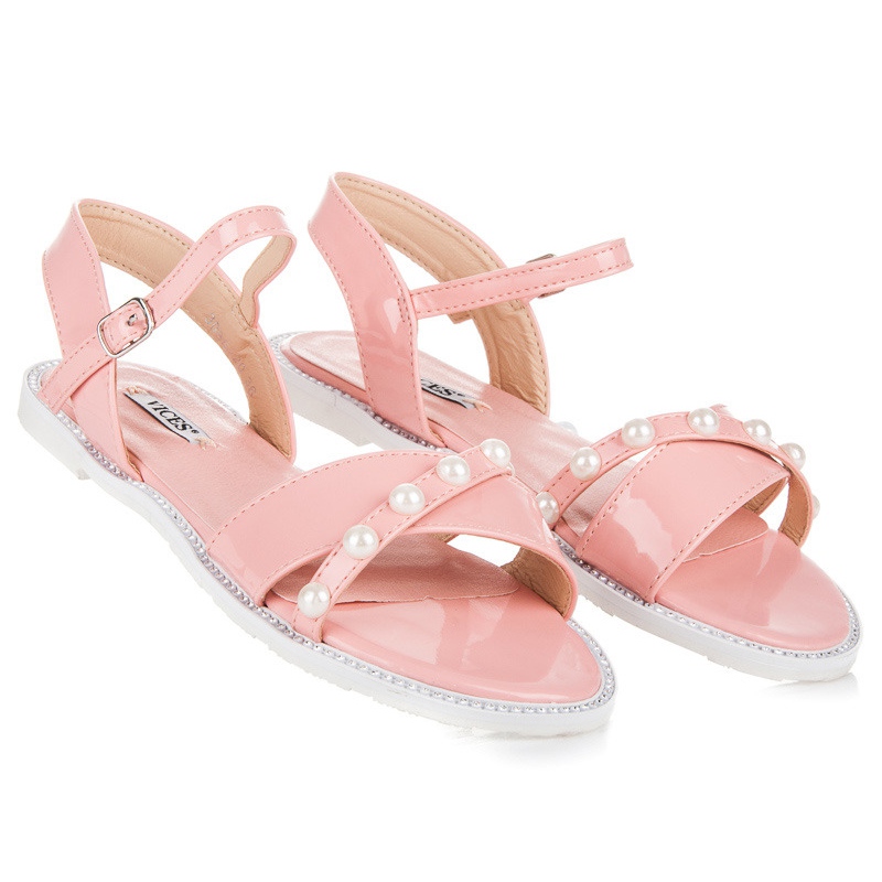 Detalles: Vices Sandalias planas con perlas rosa