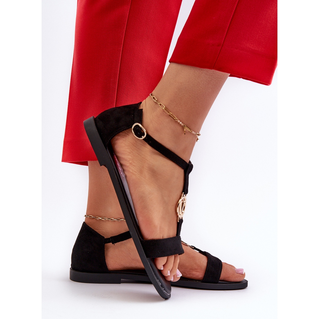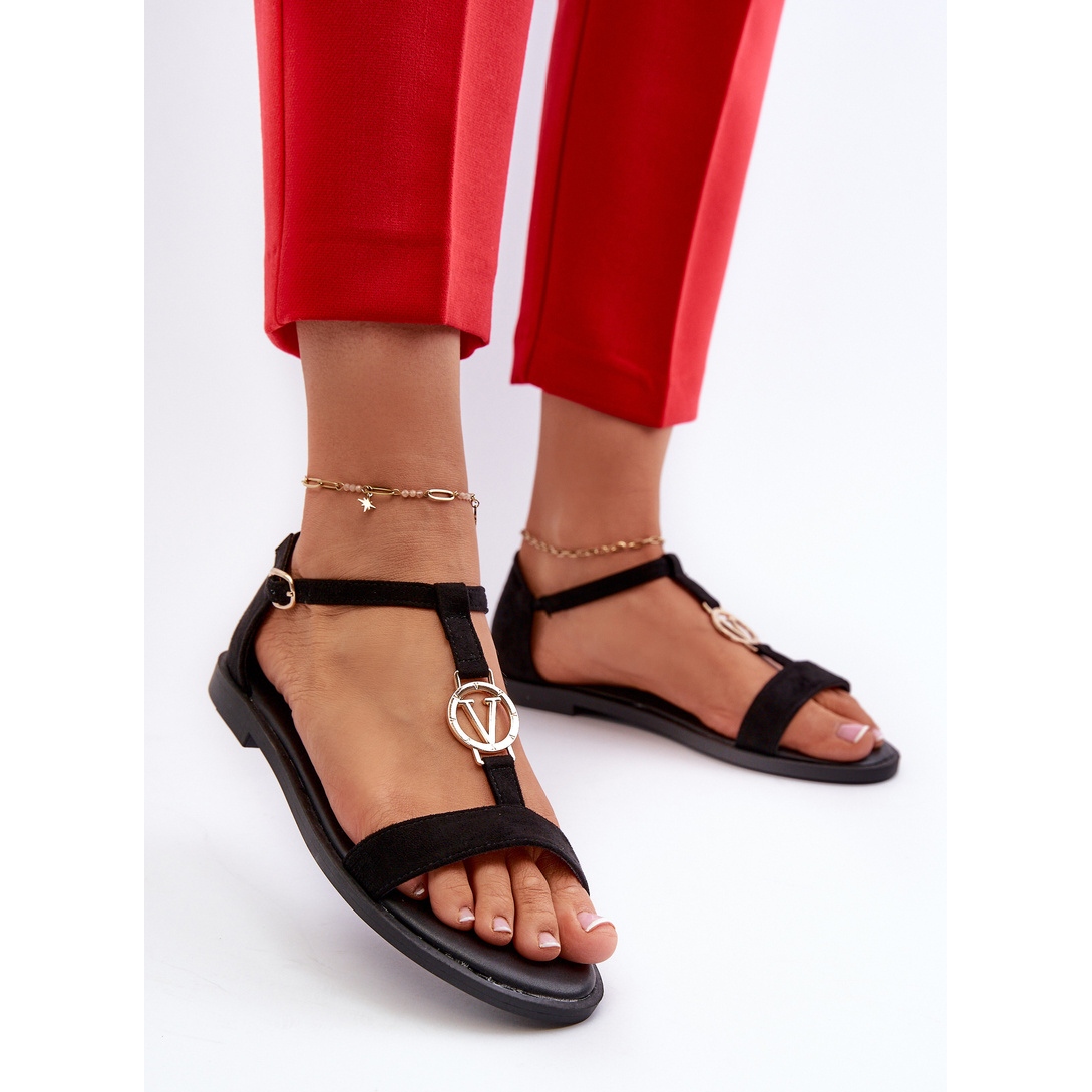 Detalles: Sandalias Planas De Mujer Con Adorno Dorado Vinceza 17321 Negro
