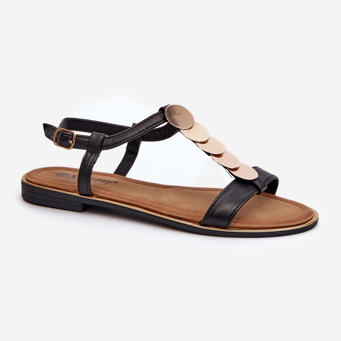 Detalles: Sandalias Planas de Mujer Confeccionadas en Piel Ecológica Negro Jeritellia