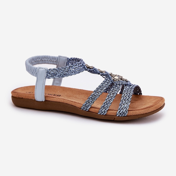 Las sandalias planas para mujeres con rayas trenzadas 56C1325 en azul son la opción perfecta para las mujeres que valoran la comodidad y el diseño de moda. Estas sandalias únicas de la marca polaca Artiker combinan la modernidad y la elegancia, lo que las hace perfectas para las estilizaciones cotidianas.