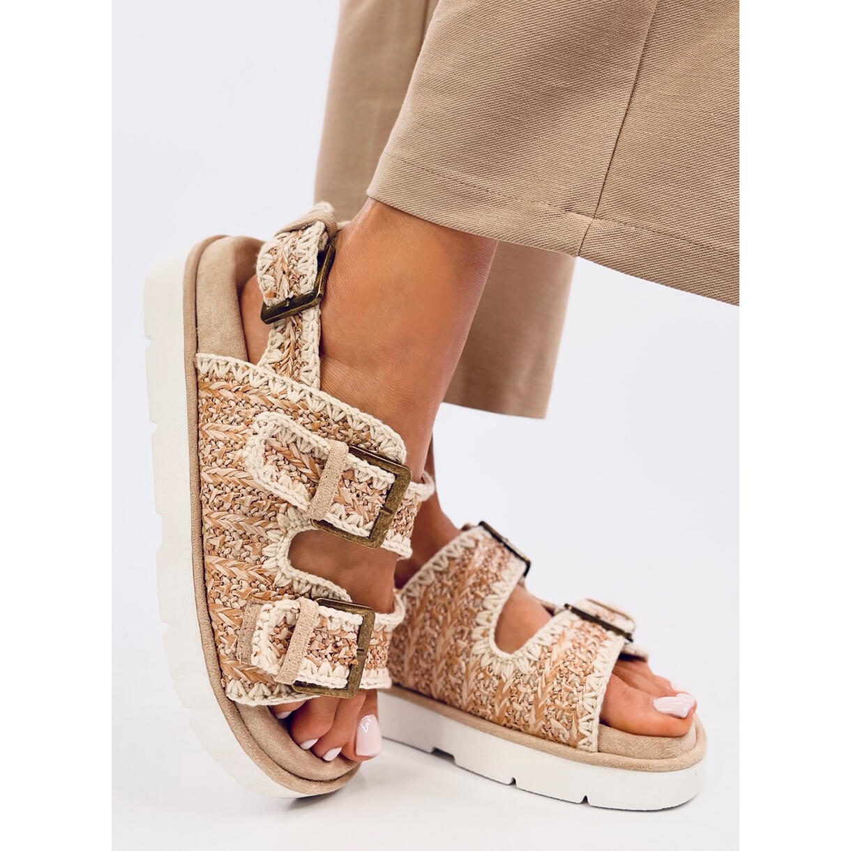 El modelo sin puntera y tacón plano garantiza estabilidad y libertad de movimiento, y el cierre con hebilla permite ponérselo y quitárselo fácilmente. Las sandalias Badey son imprescindibles esta temporada y se convertirán en un elemento favorito de todo armario de verano.