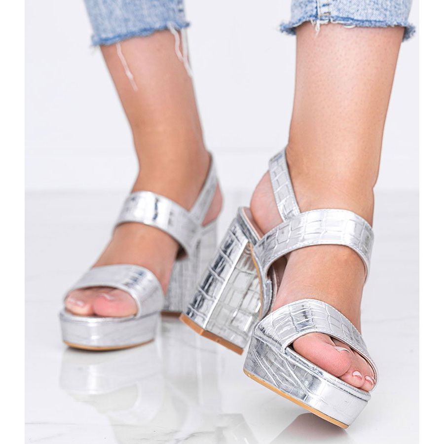 Detalles: Sandalias plateadas metalizadas en un poste con el tema animal Liv plata