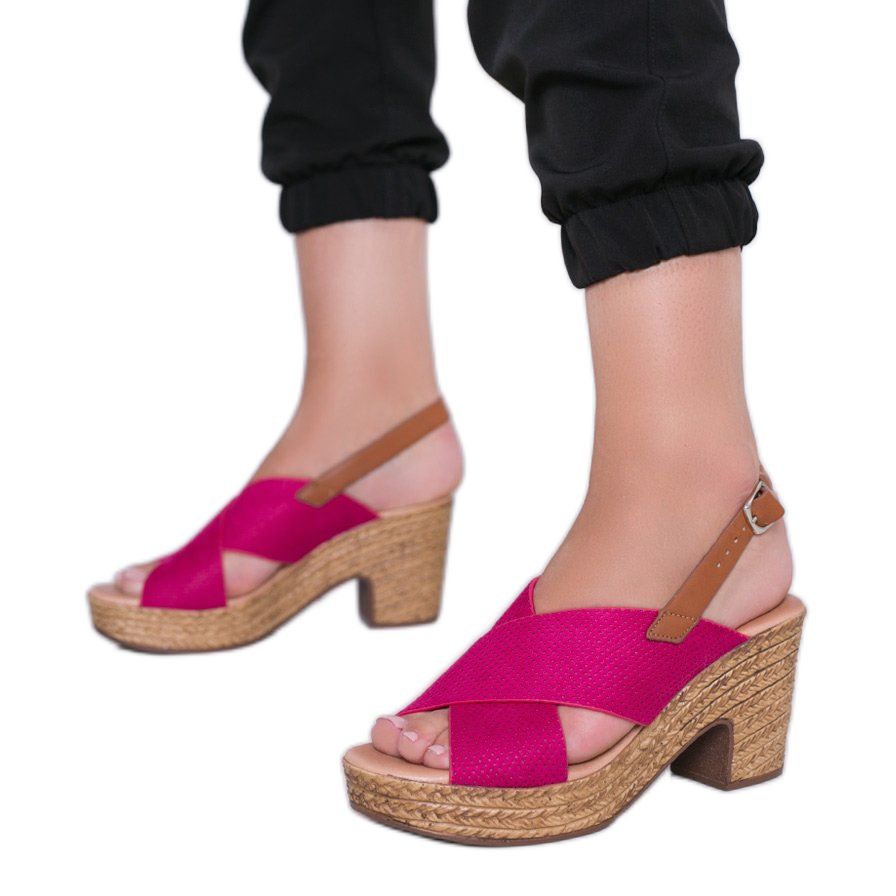 Descubre el modelo único de sandalias de tacón Magic Woman que hará las delicias de todas las amantes de los complementos con estilo. Estos zapatos ligeros y cómodos en un bonito tono rosa (color del fabricante: Rose) son la elección perfecta para los días de verano. La parte superior confeccionada en piel ecológica serraje, decorada con un patrón calado, les confiere un carácter sutil y elegante.