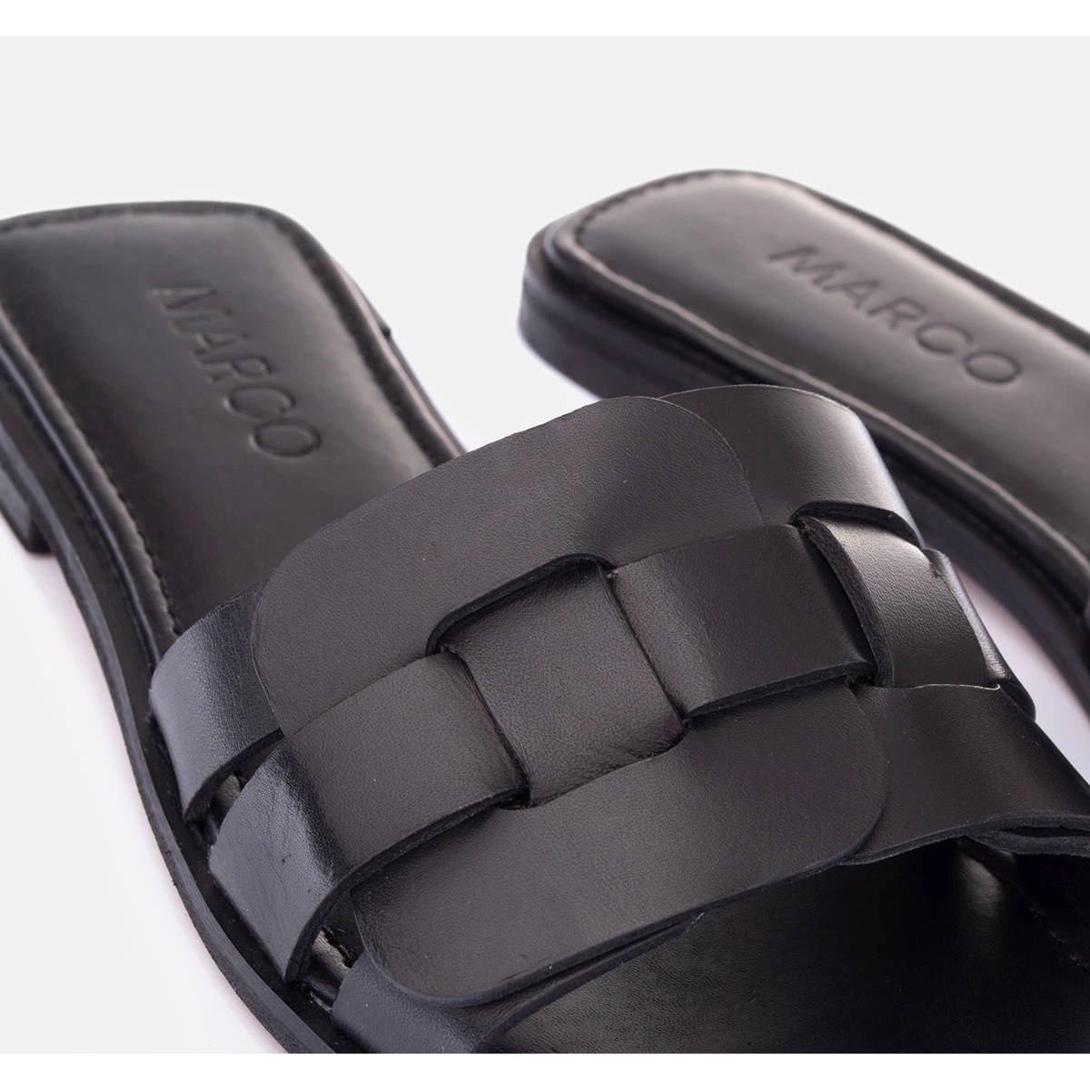 Marco Shoes Las chanclas negras con tiras trenzadas son un elemento insustituible del guardarropa de toda mujer que valora la alta calidad, la comodidad y la elegancia en todas las circunstancias. El color universal, el diseño único y los materiales de primera clase los convertirán en los favoritos durante muchas temporadas.