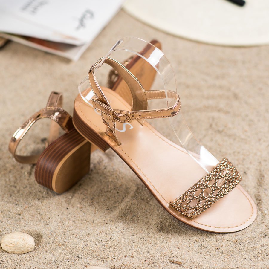 El diseño de las sandalias se distingue por elementos tejidos que les dan un carácter único. Su superficie brillante llama la atención y aporta elegancia a cualquier estilismo. Gracias al uso de materiales de alta calidad, estas sandalias no sólo son visualmente atractivas, sino también extremadamente cómodas. Se ajustan fácilmente al pie, lo que las hace perfectas para paseos diarios y ocasiones especiales.