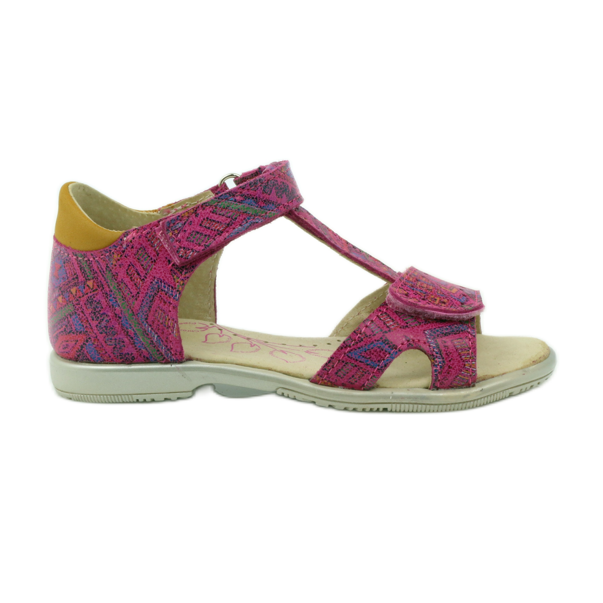 Descubre las exclusivas sandalias con cierre adhesivo Ren But 3296 en un precioso color rosa, perfectas para todas las niñas. Estas sandalias de cuero de la reconocida marca polaca Ren But se distinguen por un patrón azteca inusual y un tacón rígido y duradero, que garantiza estabilidad y comodidad durante el uso.